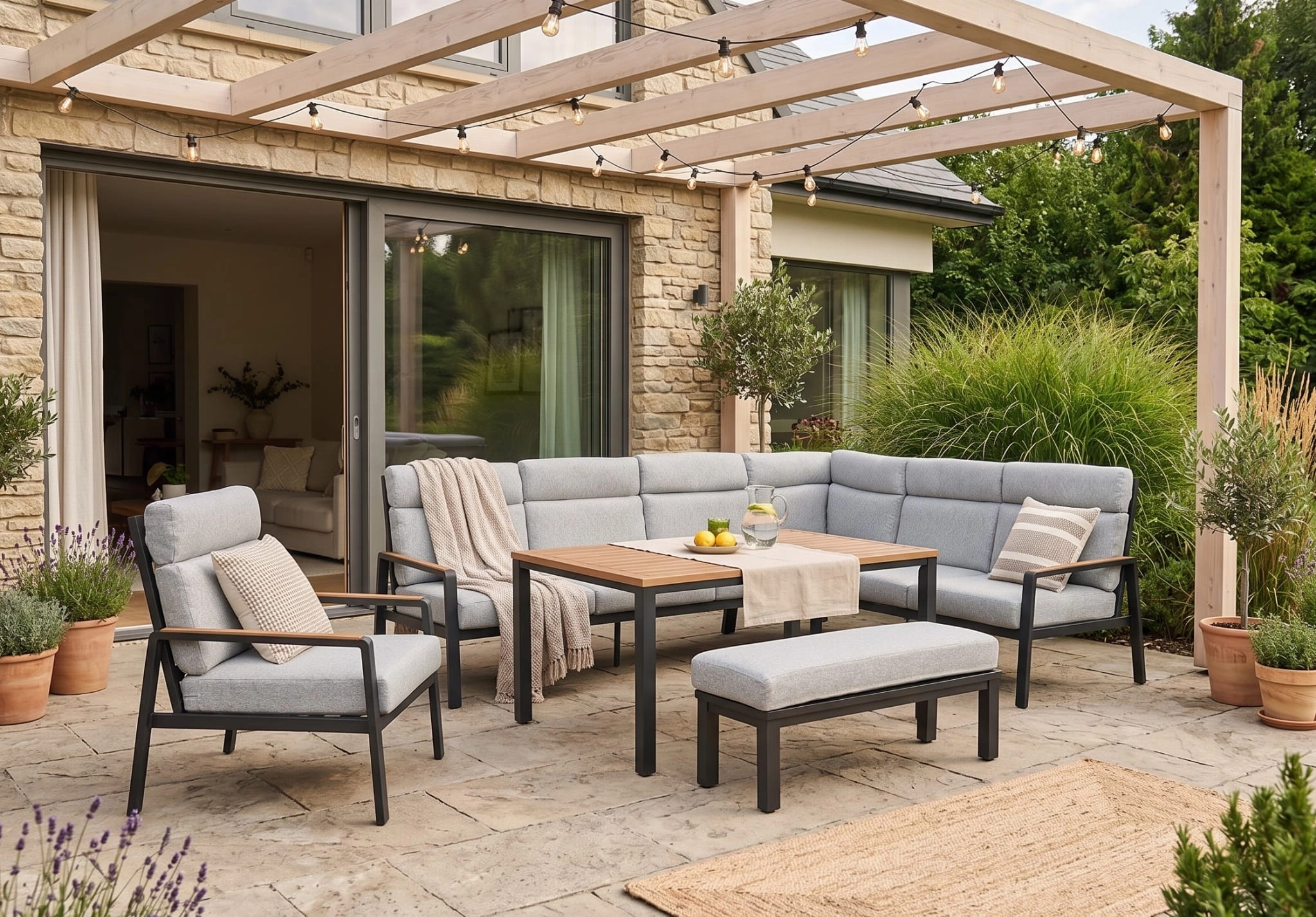 ASTON świetnie współgra z lampionami, czarnymi donicami, dywanem zewnętrznym, drewnianymi dodatkami oraz oświetleniem ogrodowym. Możesz zestawić go z roślinami w dużych osłonkach i ciepłym światłem, tworząc miejsce idealne na rodzinne spotkania na tarasie, spokojny poranek z kawą lub letnie przyjęcia w ogrodzie z bliskimi.
