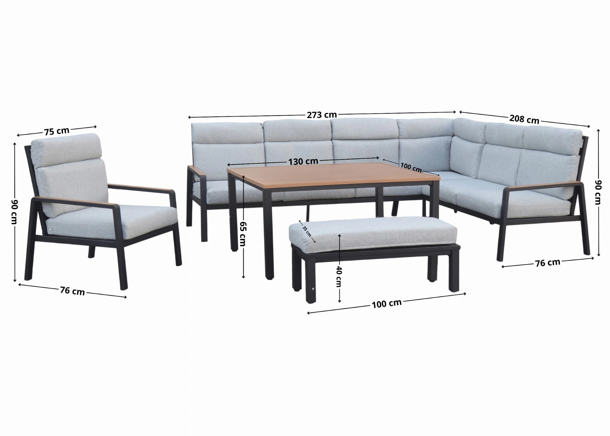 ASTON to zestaw mebli ogrodowych, który pozwala stworzyć wygodną i uporządkowaną przestrzeń do odpoczynku, posiłków oraz spotkań z bliskimi. Lewostronny układ narożnika pomaga dobrze wykorzystać narożnik tarasu, a kompletna konfiguracja ze stołem, fotelem i ławeczką sprawia, że od razu zyskujesz gotową strefę relaksu. To praktyczne meble tarasowe dla 8–10 osób, które sprawdzą się podczas rodzinnych obiadów, wieczornych rozmów i letnich przyjęć w ogrodzie.