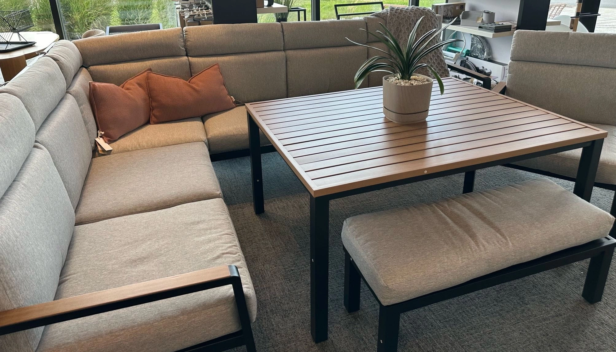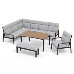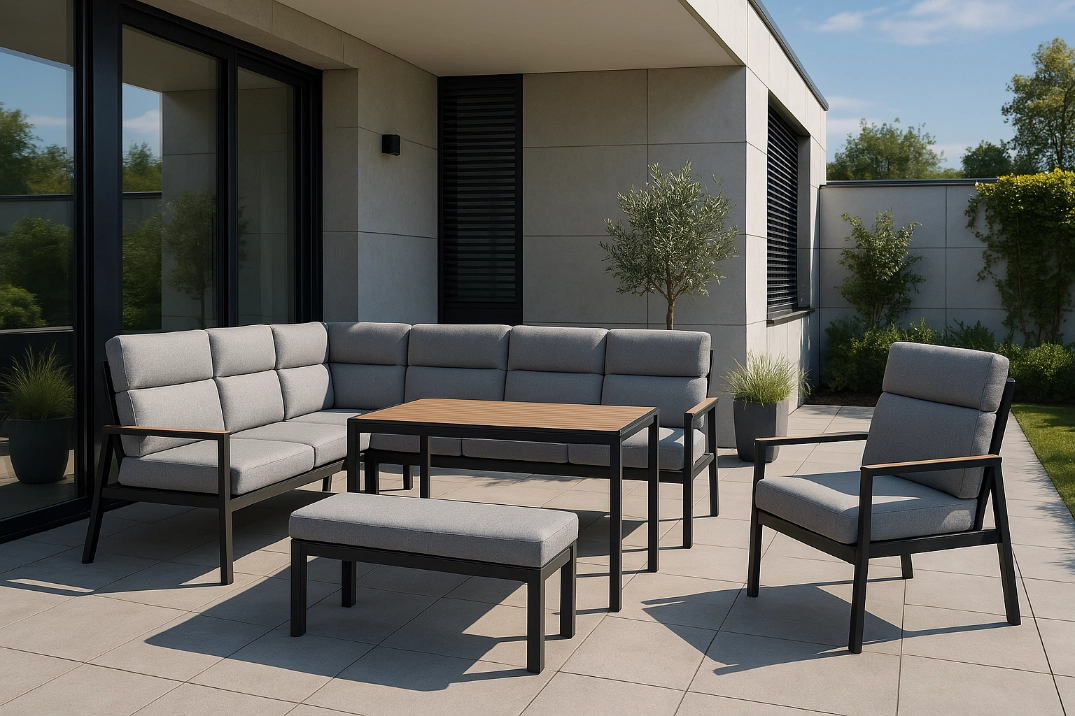 Masz taras, ale trudno stworzyć na nim miejsce, w którym każdy znajdzie wygodne siedzisko? Przy większej liczbie gości często pojawia się problem z dostawianiem przypadkowych krzeseł, zbyt małym stołem i chaosem w aranżacji. ASTON rozwiązuje ten problem jako komplet wypoczynkowy do ogrodu, który łączy narożnik, fotel, ławeczkę i stół w jednej spójnej strefie.