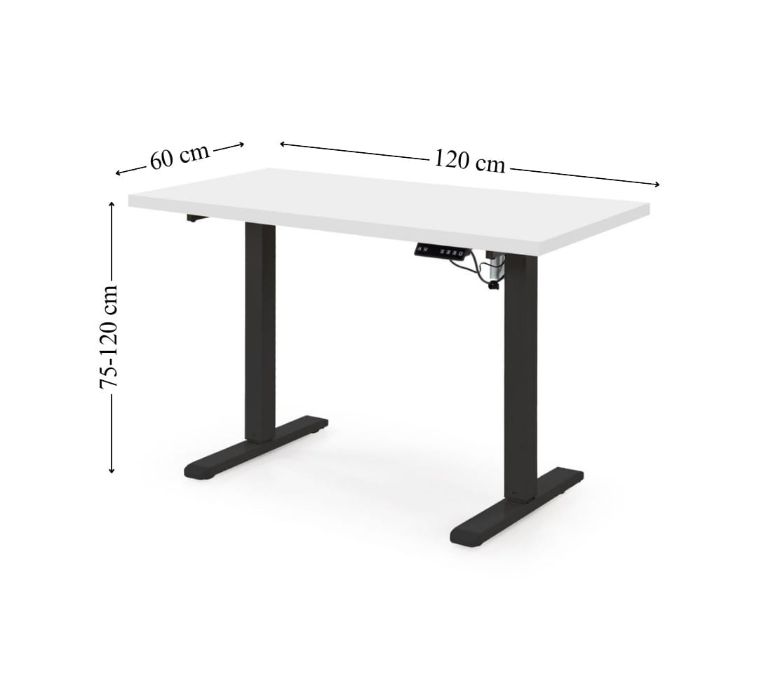 Dzięki cichej pracy siłowników oraz intuicyjnemu panelowi z pamięcią ustawień, możesz łatwo dopasować wysokość blatu do swoich preferencji. Konstrukcja oparta na stalowym stelażu malowanym proszkowo zapewnia stabilność, a biały blat z laminowanej płyty meblowej świetnie wpisuje się w styl minimalistyczny i skandynawski.