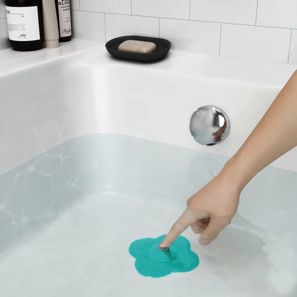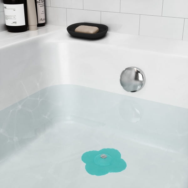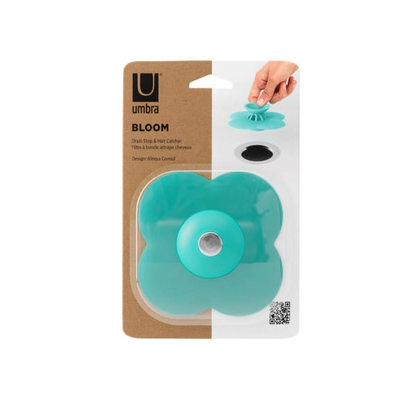 Korek do wanny i łapacz włosów BLOOM UMBRA w kolorze turkusowym to praktyczne rozwiązanie 2w1, które zapewnia swobodny przepływ wody i chroni odpływ przed zapychaniem. Oryginalny kształt kwiatka nadaje łazience świeży, nowoczesny akcent. To funkcjonalny turkusowy korek do odpływu z sitkiem, który ułatwia utrzymanie czystości.