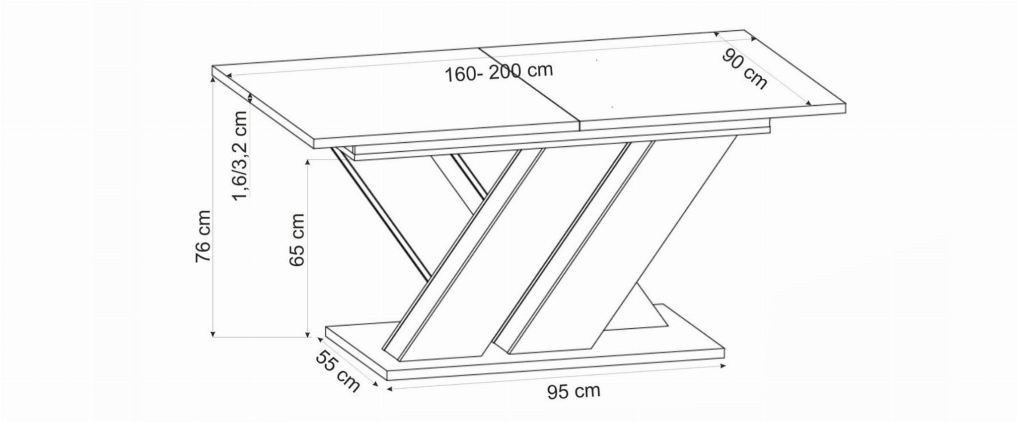 - Funkcja rozkładania – możliwość przedłużenia blatu z 160 cm do 200 cm