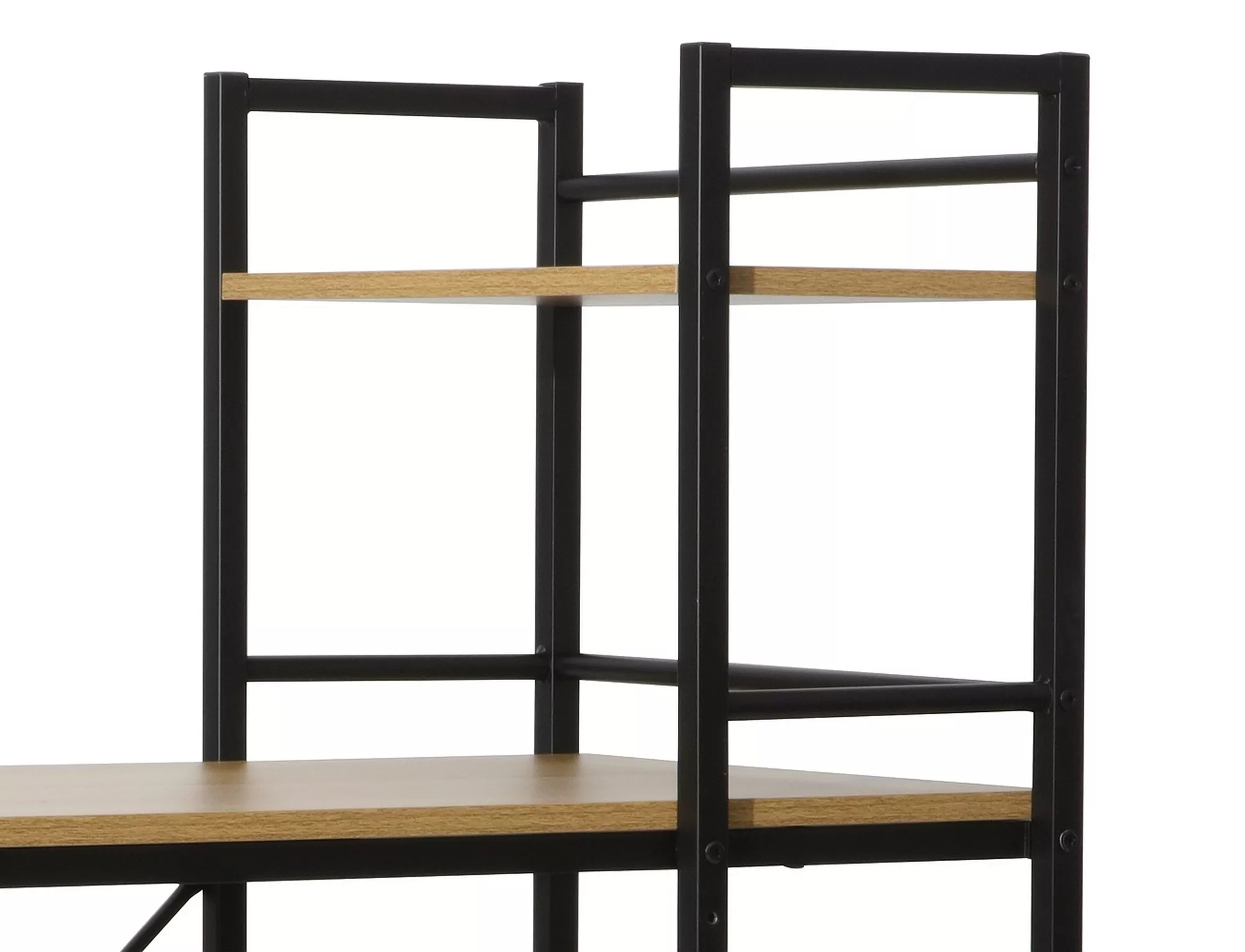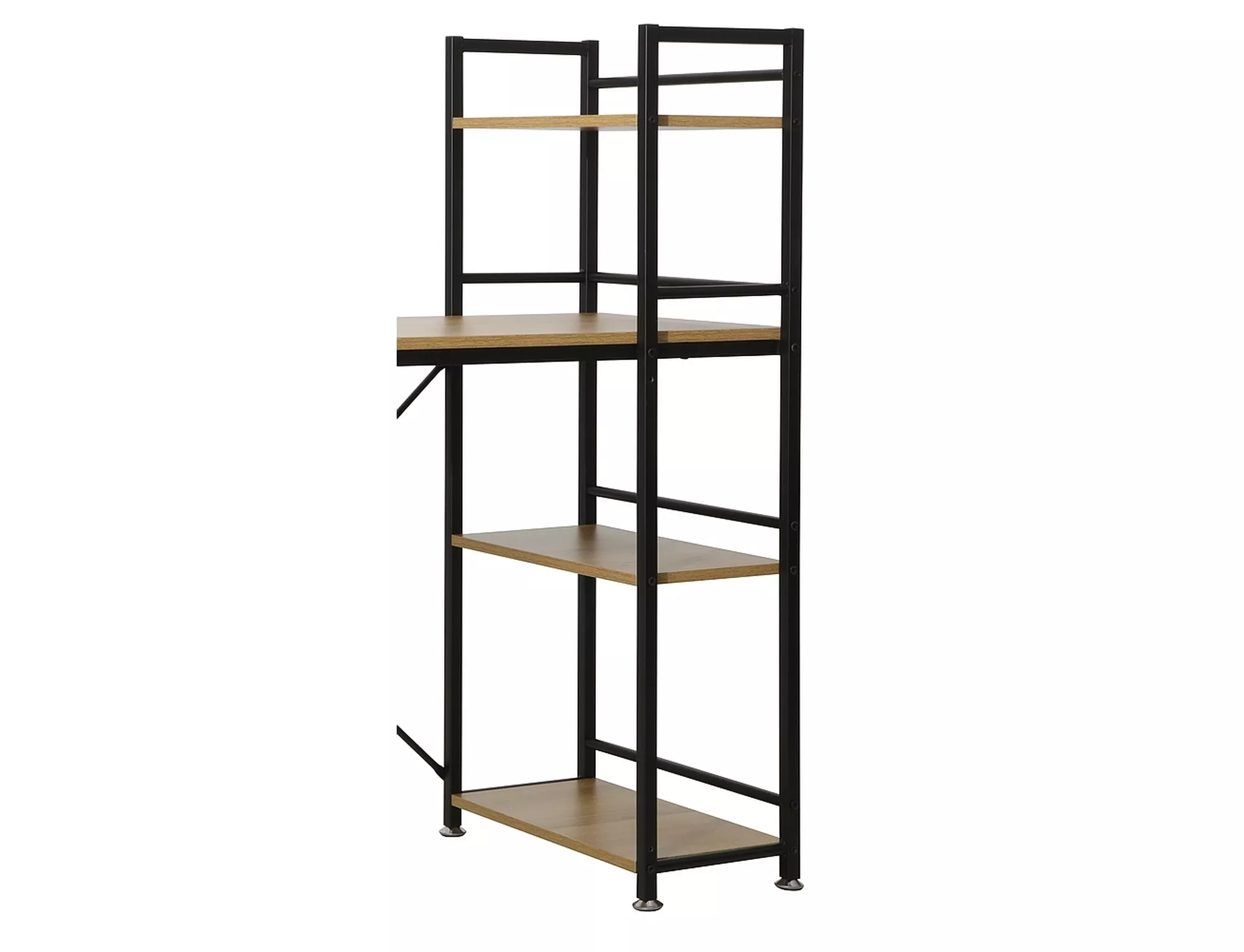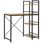 Wbudowany regał boczny sprawia, że wszystkie niezbędne dokumenty, książki czy akcesoria biurowe masz zawsze pod ręką. Dzięki temu zyskujesz lepszą organizację przestrzeni i większy komfort pracy. Metalowa konstrukcja nadaje meblowi charakterystyczny loftowy styl, a dekor dąb ociepla wnętrze i wprowadza przytulną atmosferę.
