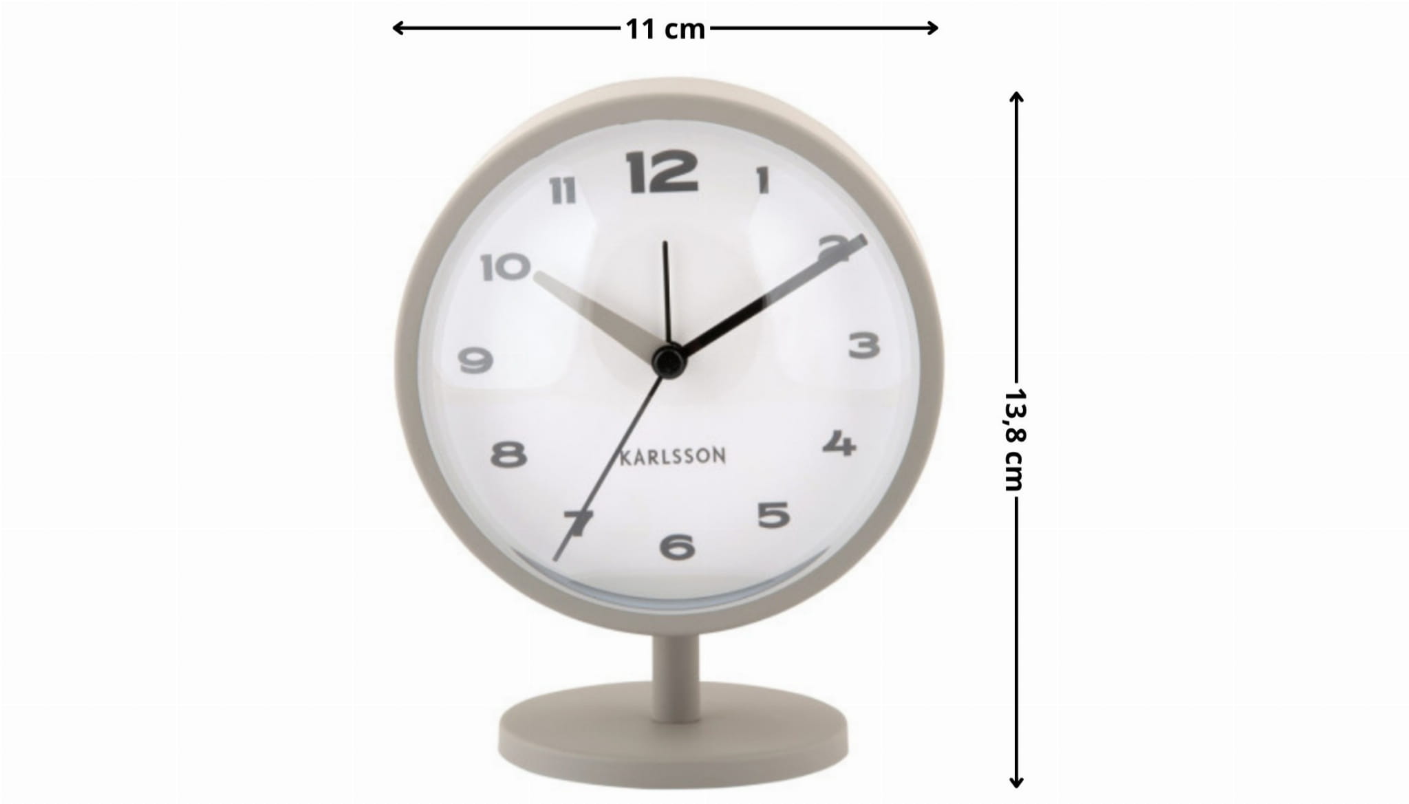 Budzik stołowy BRISK DOME w kolorze szarym to idealna propozycja dla tych, którzy cenią sobie nowoczesny design, prostotę formy i funkcjonalność. Niezależnie od tego, czy postawisz go na stoliku nocnym, komodzie czy biurku – doda on wnętrzu szyku, nie dominując przestrzeni.