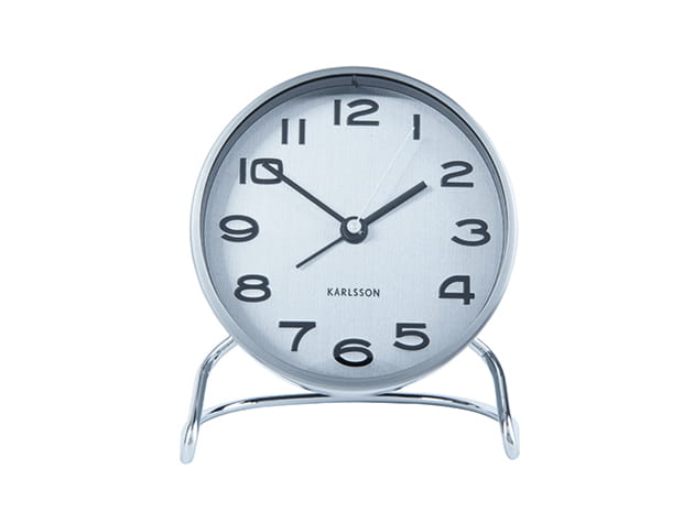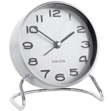 Metalowa konstrukcja i satynowe srebrne wykończenie nadają mu elegancki, ponadczasowy charakter, który świetnie komponuje się z wnętrzami w stylu klasycznym, minimalistycznym czy skandynawskim. To analogowy budzik do sypialni, który nie rozprasza nadmiarem funkcji, a jednocześnie spełnia swoją rolę w stu procentach.