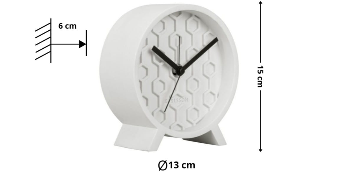 ✨ Budzik HONEYCOMB biały – nowoczesny dodatek do sypialni i biura
