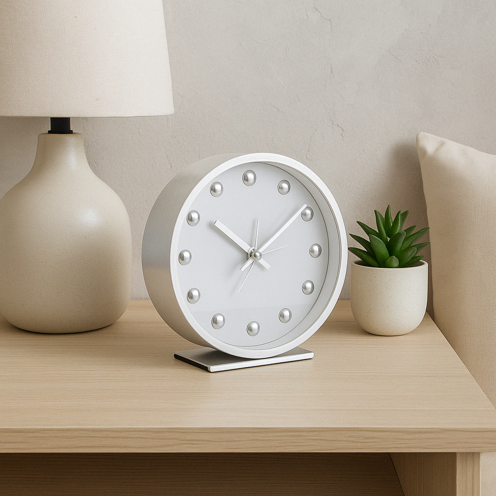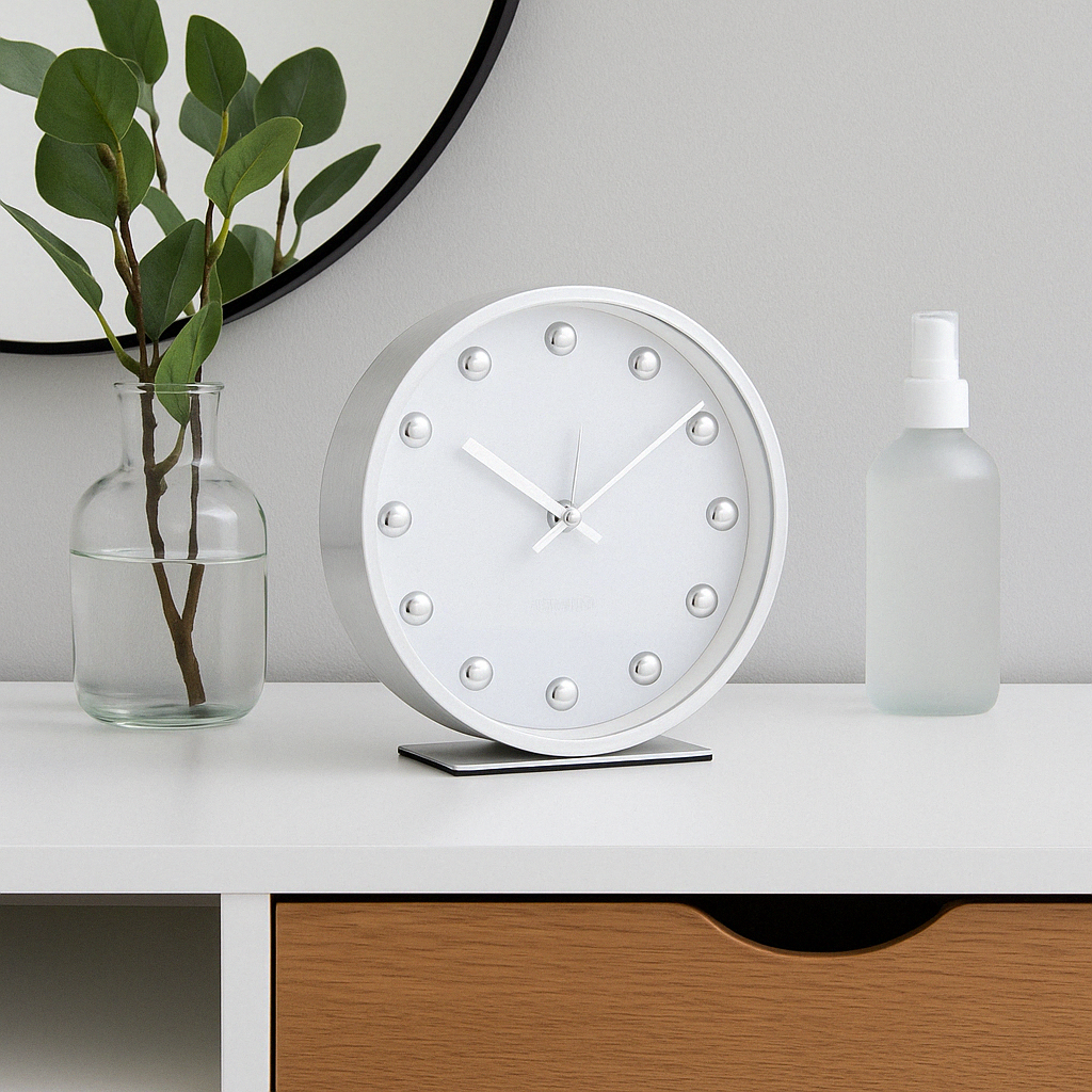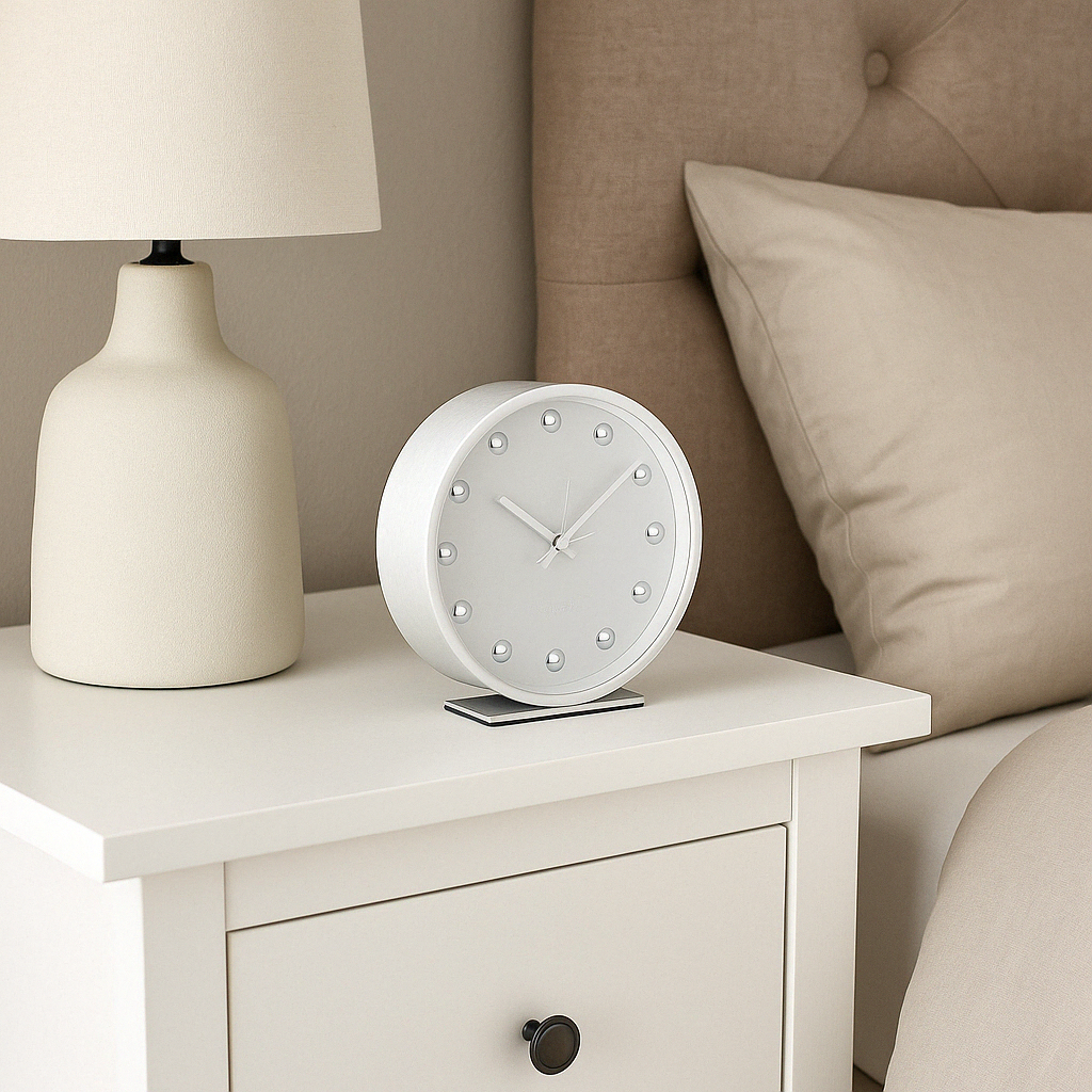 ✨Stylowy budzik SHINY DOTS biały – elegancja i funkcjonalność w nowoczesnym wnętrzu