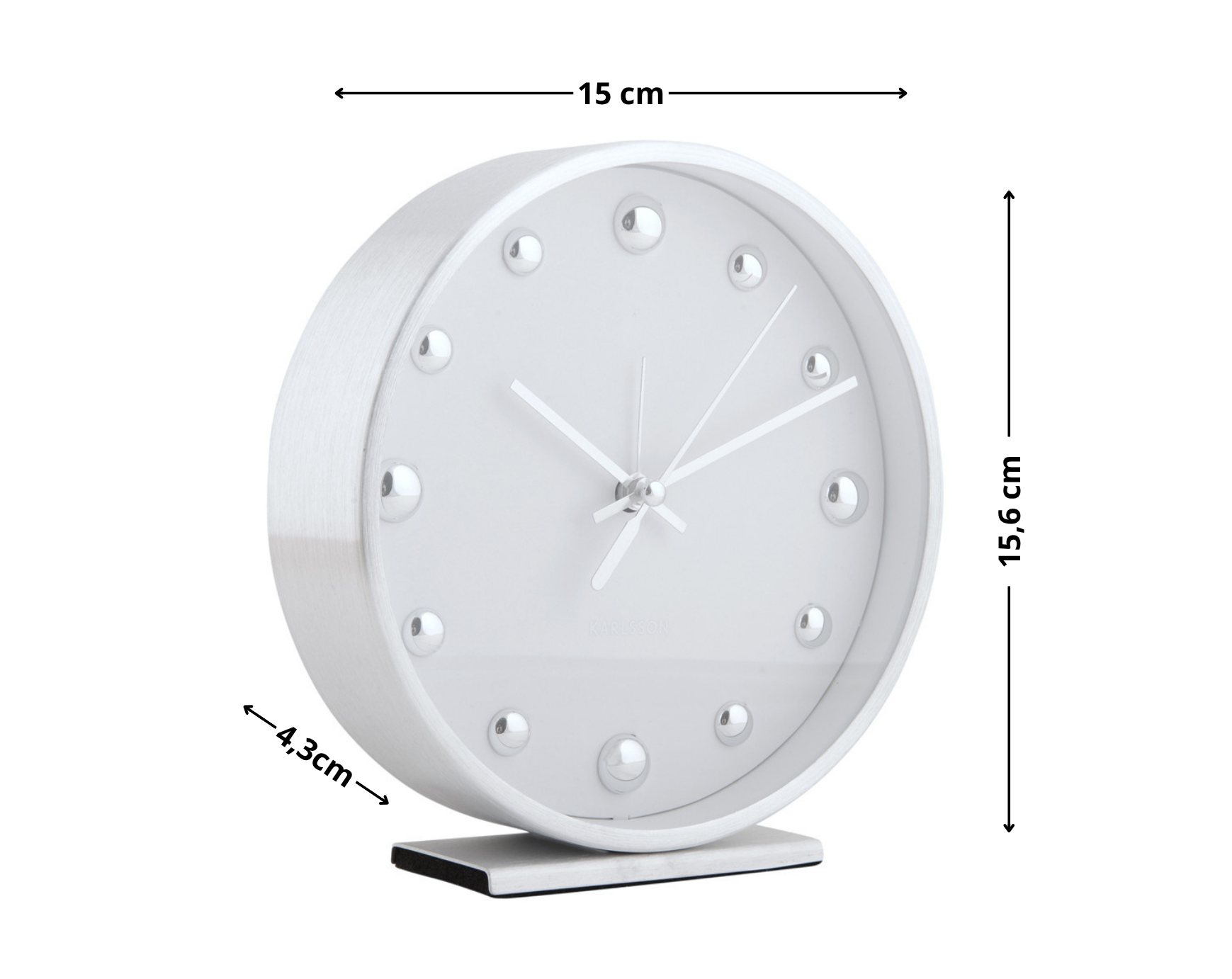 Budzik SHINY DOTS to idealne połączenie designu i funkcjonalności, które podkreśli charakter każdego stylowego wnętrza. Wykonany z wysokiej jakości aluminium w kolorze białym, zachwyca minimalistycznym wyglądem i nowoczesnym wykończeniem. To doskonały wybór dla osób poszukujących eleganckiego budzika do salonu, kuchni lub sypialni, który będzie zarówno praktycznym dodatkiem, jak i stylową ozdobą.