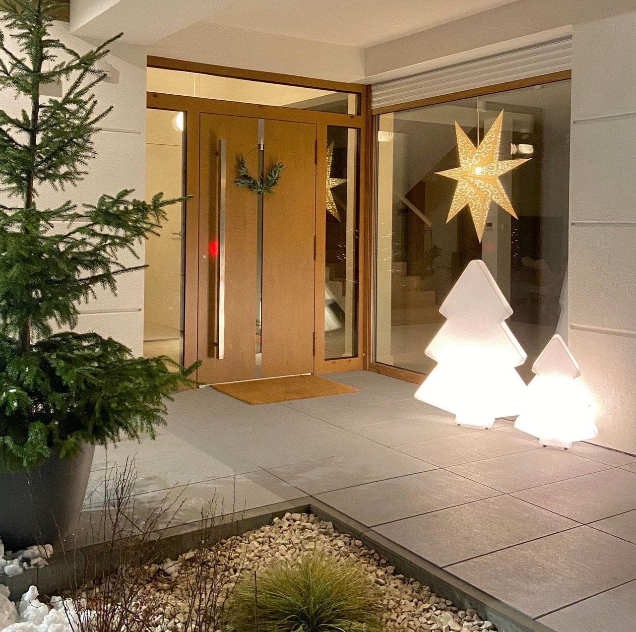 Wprowadź do swojego wnętrza magiczny klimat świąt z dużą podświetlaną choinką LED MONUMO 100 cm. Jej matowe wykończenie i minimalistyczna forma łączą elegancję z nowoczesnością, tworząc wyjątkową atmosferę zarówno we wnętrzach, jak i na zewnątrz.