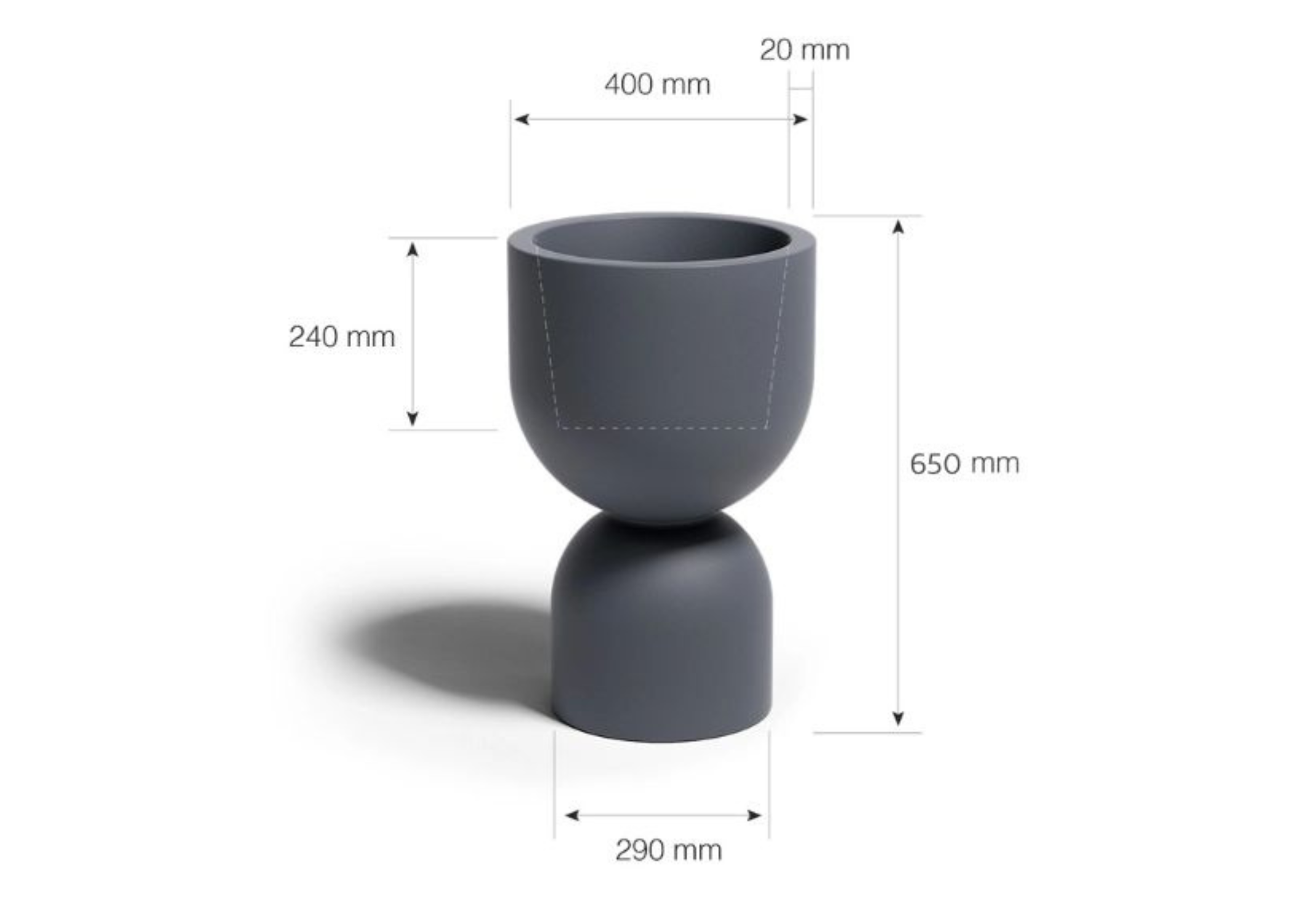 Wewnętrzna półka ułatwia sadzenie, pozwala na mniejsze zużycie ziemi i sprawia, że donica jest lżejsza. Wysokość 65 cm pozwala wyeksponować nawet większe rośliny, takie jak monstera, fikus, rozplenica, cytrusy czy małe krzewy. Dzięki odporności na warunki atmosferyczne, możesz pozostawić ją na zewnątrz przez cały rok – również zimą, gdzie świetnie sprawdzi się jako baza dekoracyjna na święta czy sezonowe ozdoby.