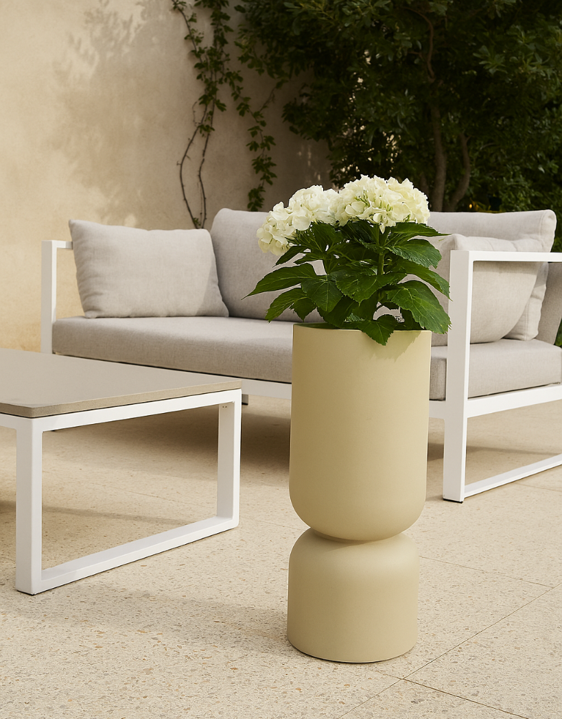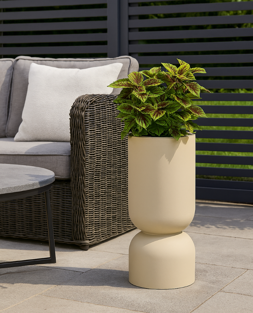 Beżowy odcień idealnie komponuje się z kolorami ziemi, zielenią roślin oraz naturalnymi materiałami jak drewno, beton czy kamień. To kolor, który nie dominuje, ale stylowo dopełnia otoczenie. Dzięki temu donica Monumo 65 cm może pełnić rolę zarówno stylowej dekoracji, jak i praktycznego pojemnika dla Twojej roślinnej kompozycji.