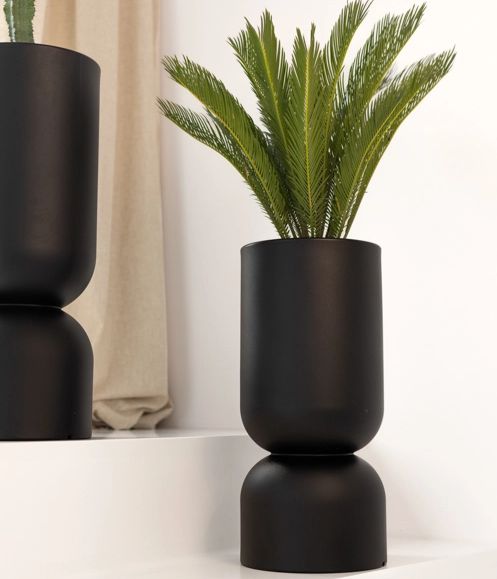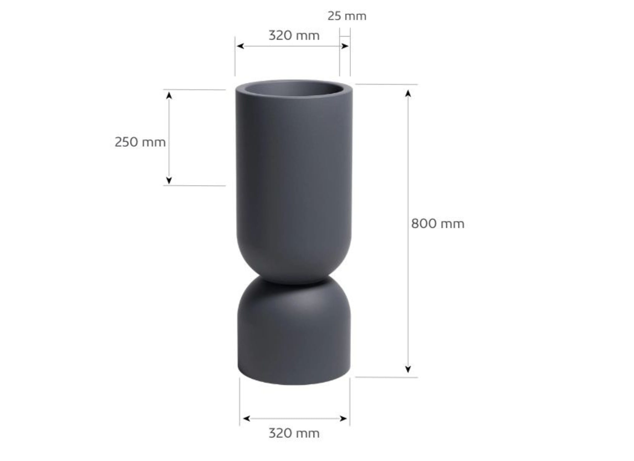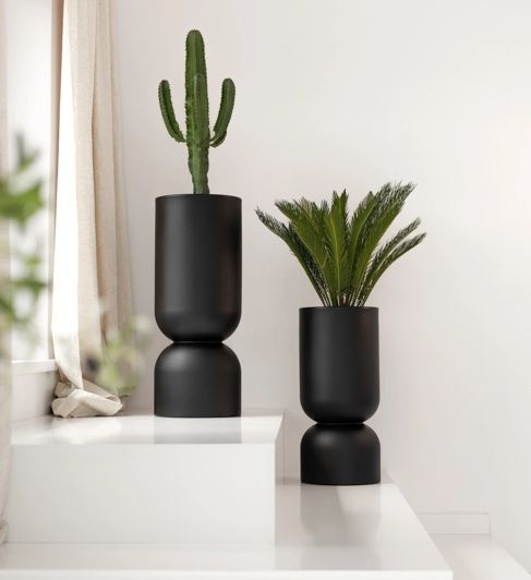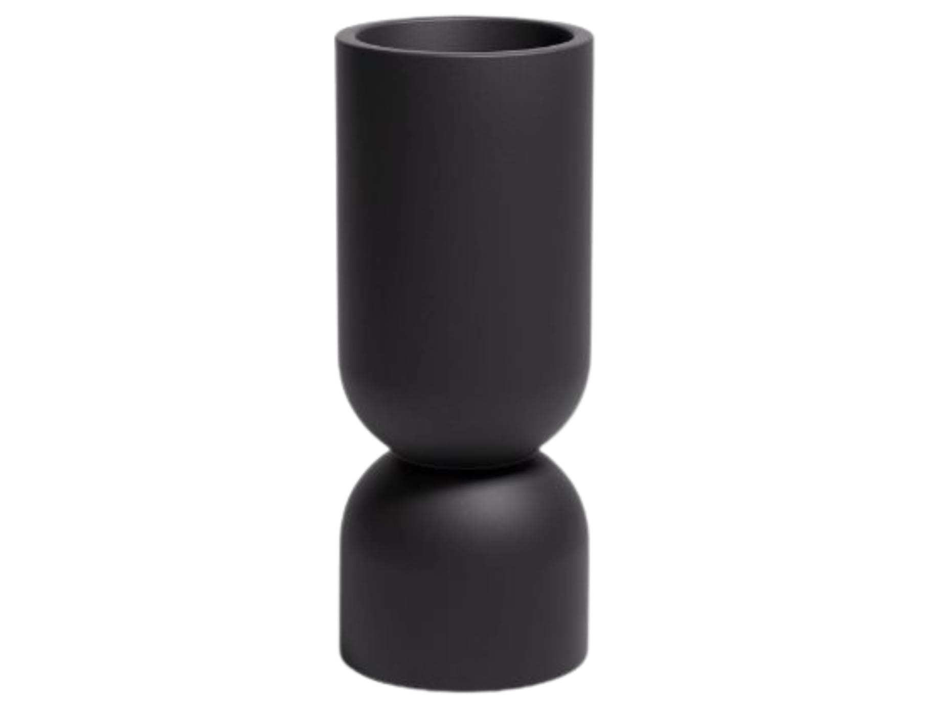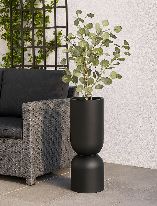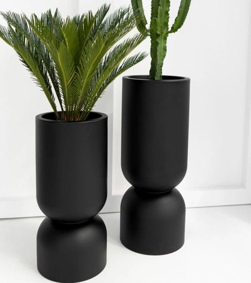 Donica Perfetto 80 cm w kolorze czarnym to designerska ozdoba do wnętrz i ogrodów, która wyróżnia się smukłym kształtem klepsydry i eleganckim wykończeniem. Jej czarny kolor wprowadza do aranżacji głębię i kontrast, idealnie podkreślając zieleń roślin. Wykonana z odpornego na warunki atmosferyczne polietylenu, mrozoodporna i UV-odporna, sprawdzi się przez cały rok – niezależnie od miejsca.