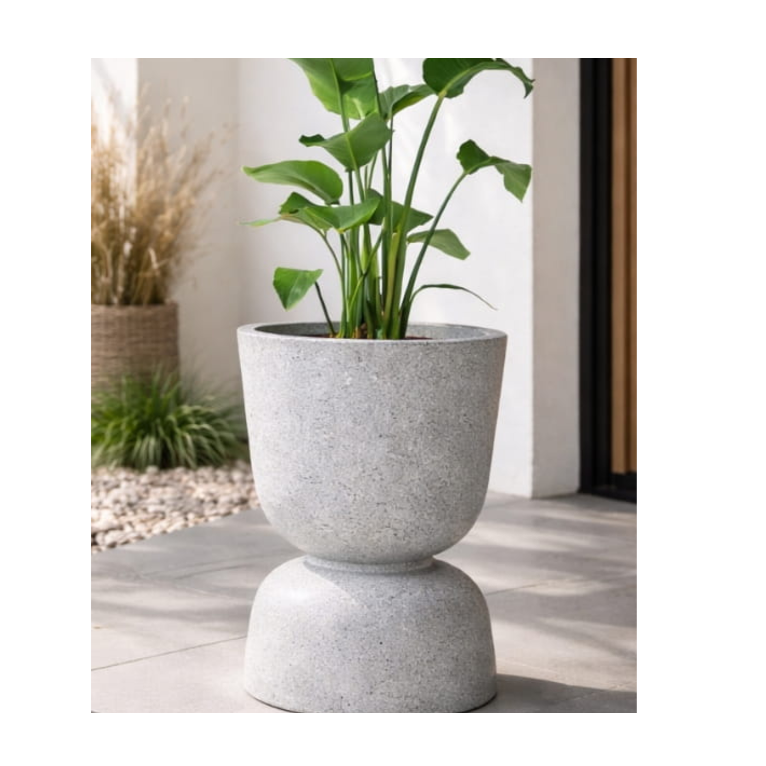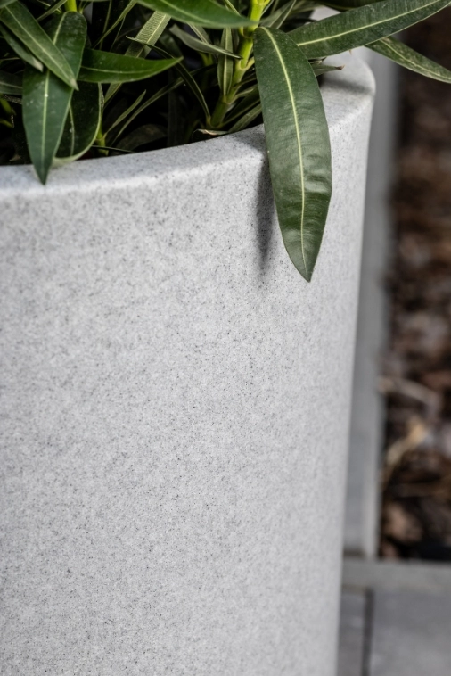 Wykończenie w kolorze efekt kamienia granitowego doskonale komponuje się z betonem architektonicznym, drewnem, szkłem oraz stalą. To idealna donica na taras nowoczesny, do ogrodu minimalistycznego oraz eleganckich wnętrz typu open space.