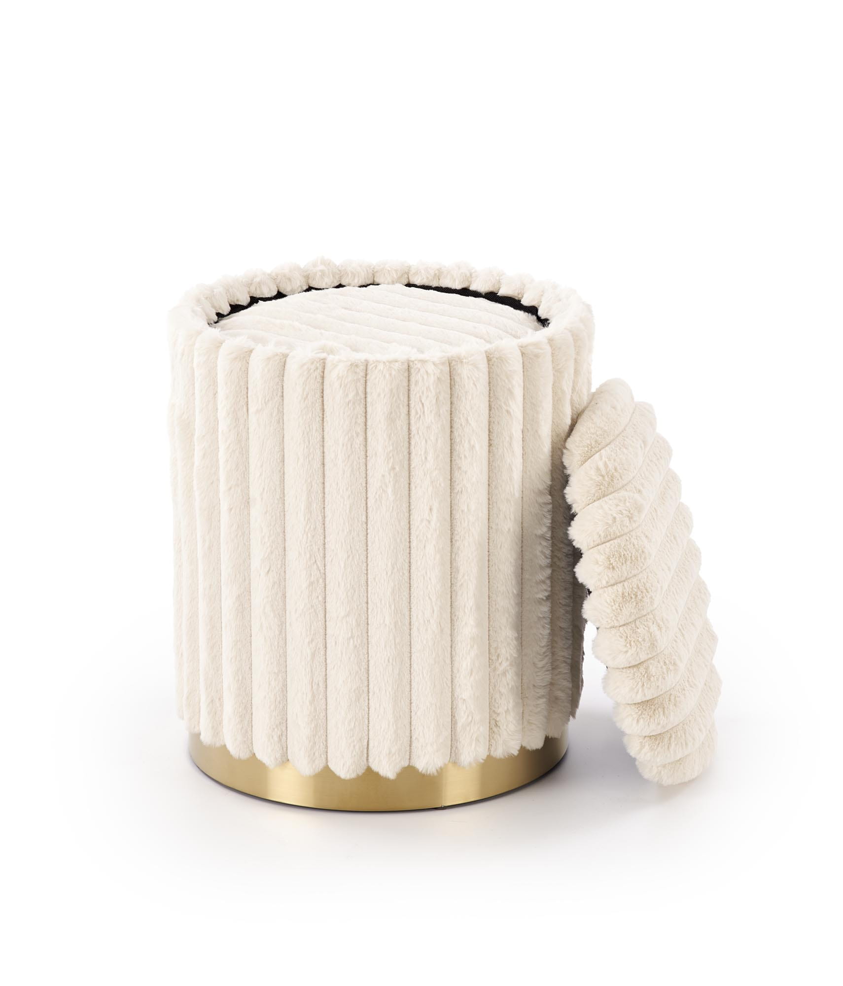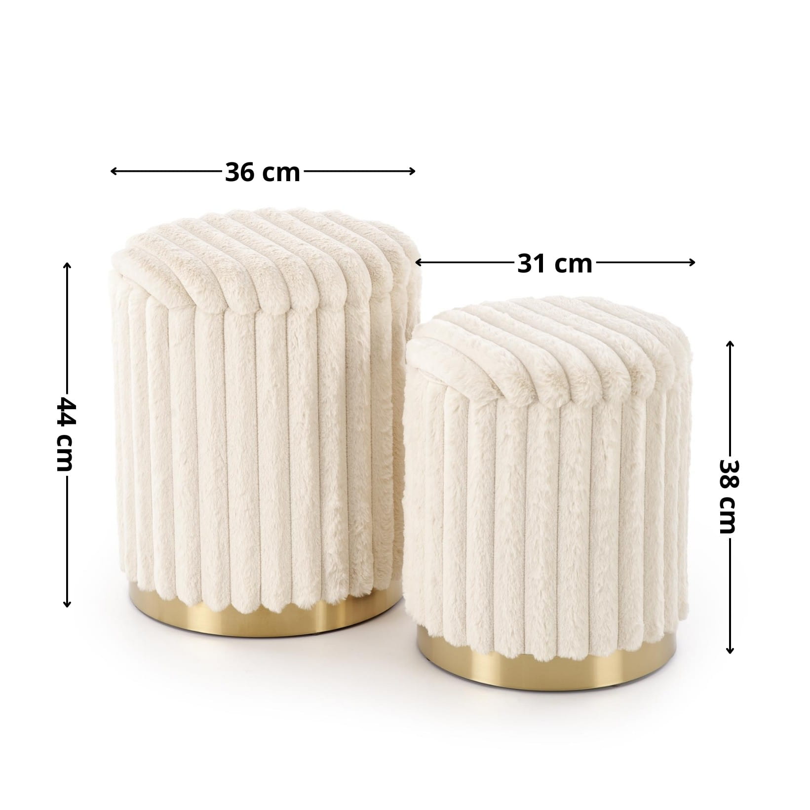 Te pufy do salonu i sypialni sprawdzą się również w garderobie, pokoju dziecięcym czy przedpokoju. Dzięki swojej funkcjonalności mogą pełnić rolę podnóżka, stolika pomocniczego lub dodatkowego siedziska. Miękka tapicerka zapewnia wygodę, a złote wykończenie dodaje wnętrzu elegancji i luksusowego charakteru.