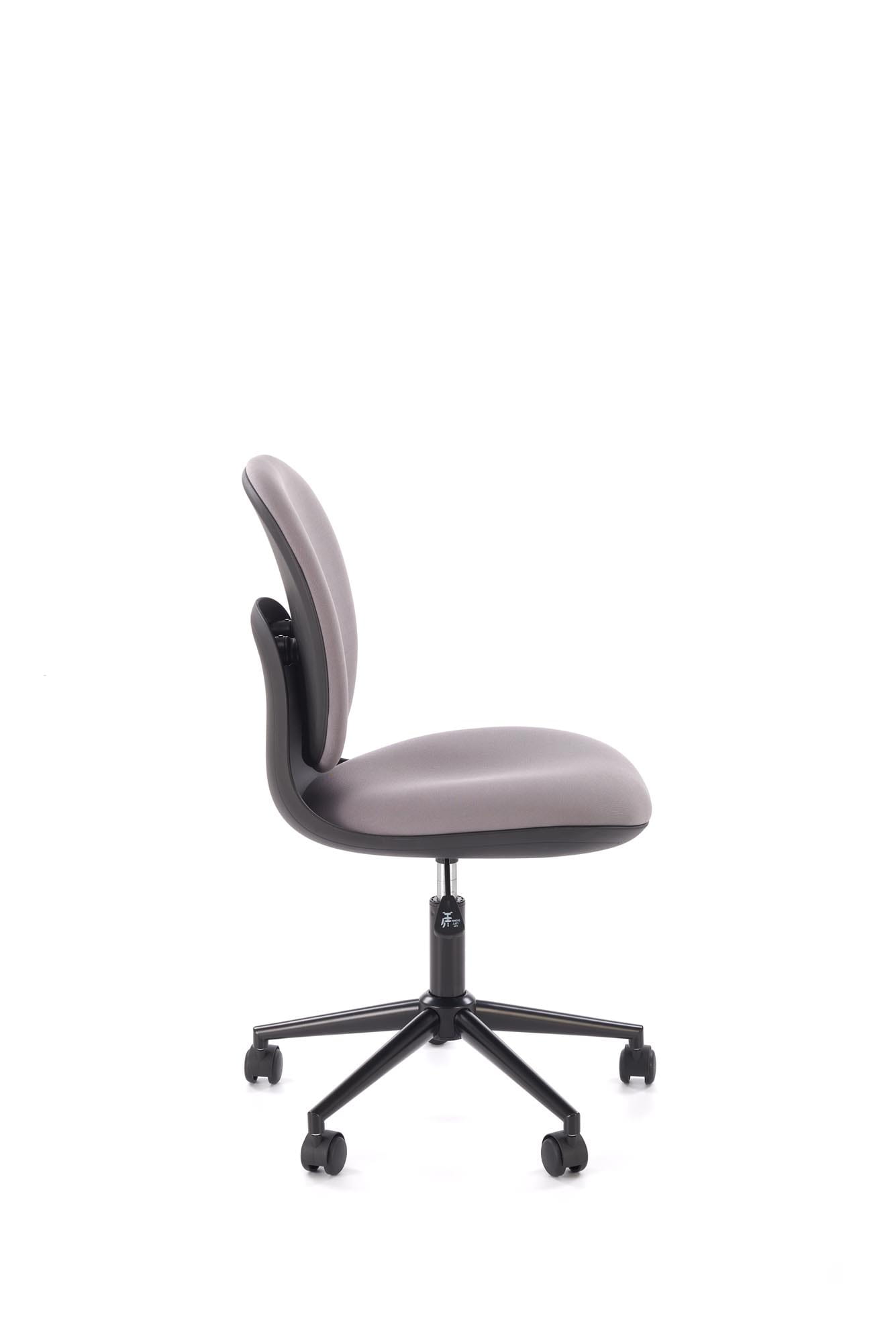 Popielata tapicerka i czarna podstawa nadają wnętrzu nowoczesnego charakteru. To idealny wybór dla osób, które szukają minimalistycznego fotela do pracy przy komputerze oraz praktycznego rozwiązania do codziennego użytkowania.