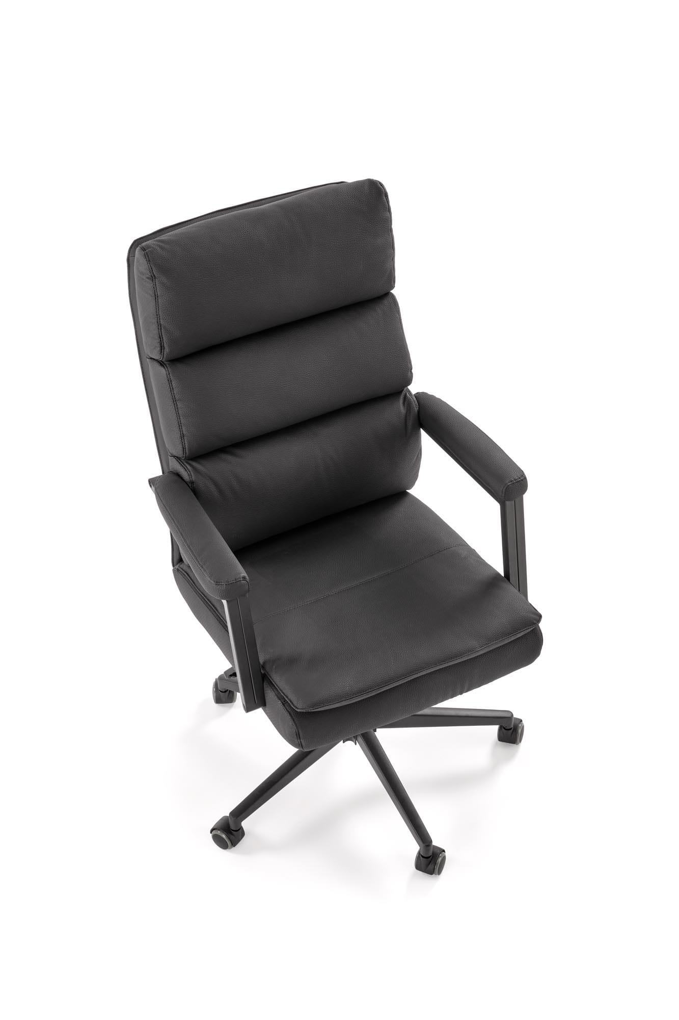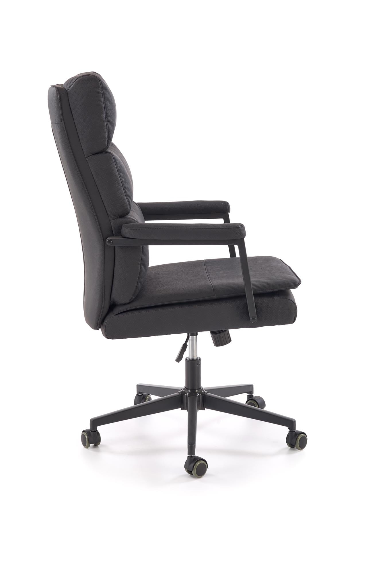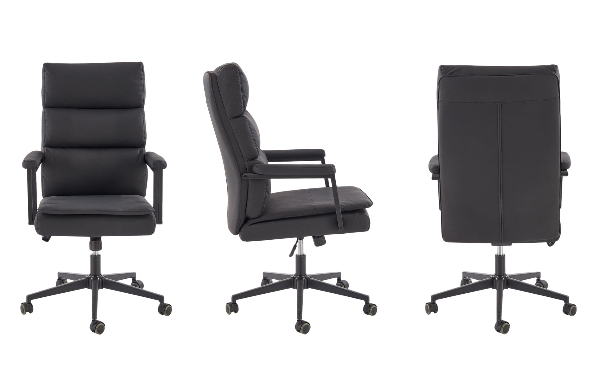 Wysokiej jakości eco skóra to materiał odporny na przetarcia i łatwy do utrzymania w czystości – idealny do intensywnego użytkowania w biurze. Czarna kolorystyka sprawia, że fotel pasuje do każdego wnętrza – od nowoczesnych gabinetów po domowe biura w stylu minimalistycznym lub klasycznym.