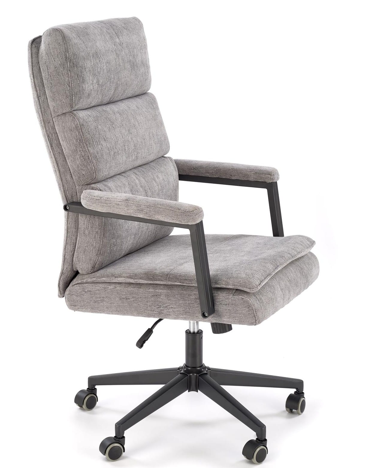 Tapicerka z trwałej tkaniny w eleganckim szarym kolorze doskonale komponuje się z modnymi wnętrzami. Kauczukowe kółka zapewniają ciche i płynne przemieszczanie się, a czarny stelaż dodaje całości wyrazistości. To fotel, który sprawdzi się zarówno w przestrzeniach biurowych, jak i domowych – niezależnie od tego, czy pracujesz, uczysz się, czy po prostu spędzasz czas przy biurku.