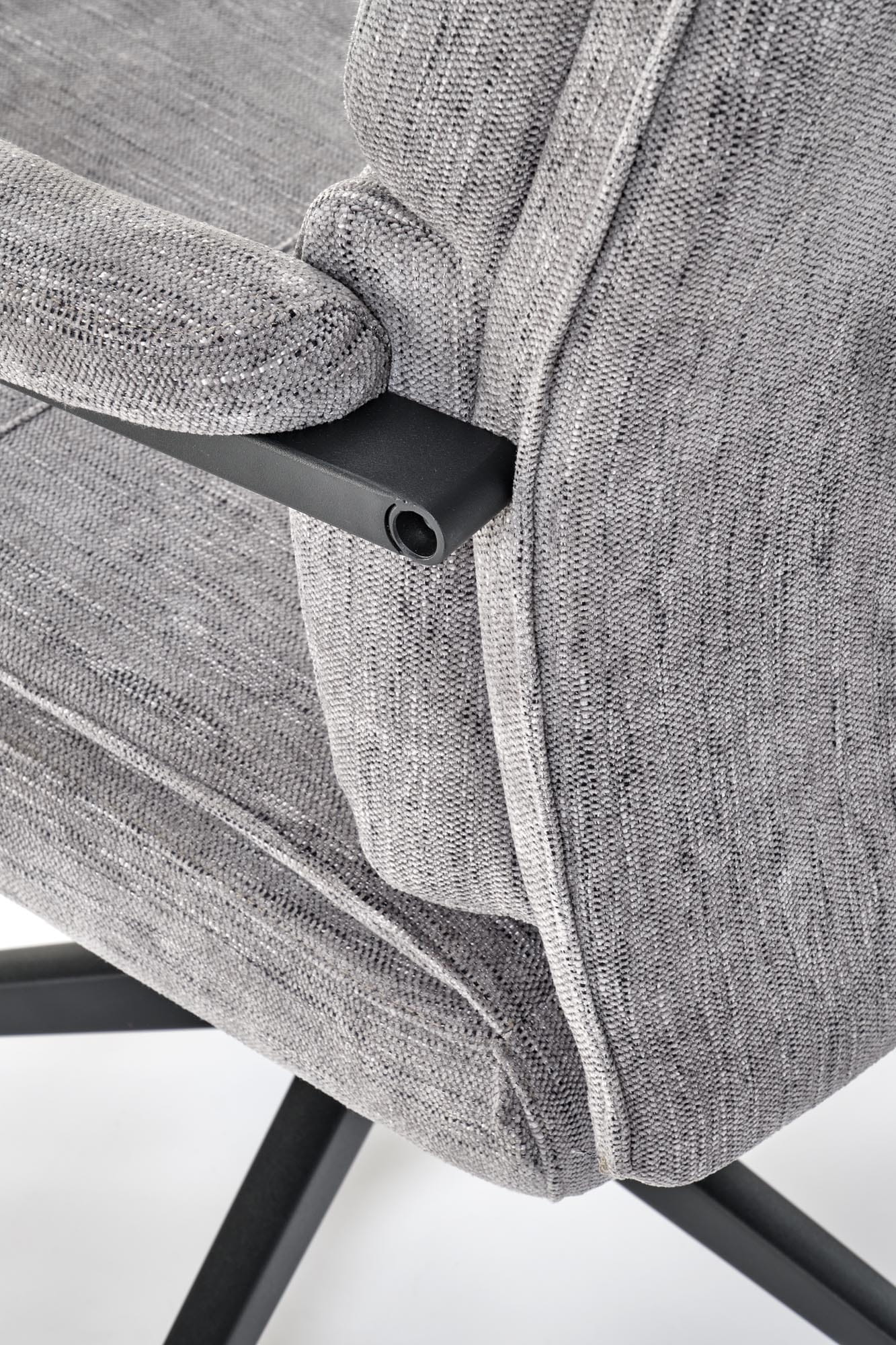 - Stylowa kolorystyka – elegancki szary kolor tapicerki i czarny stelaż