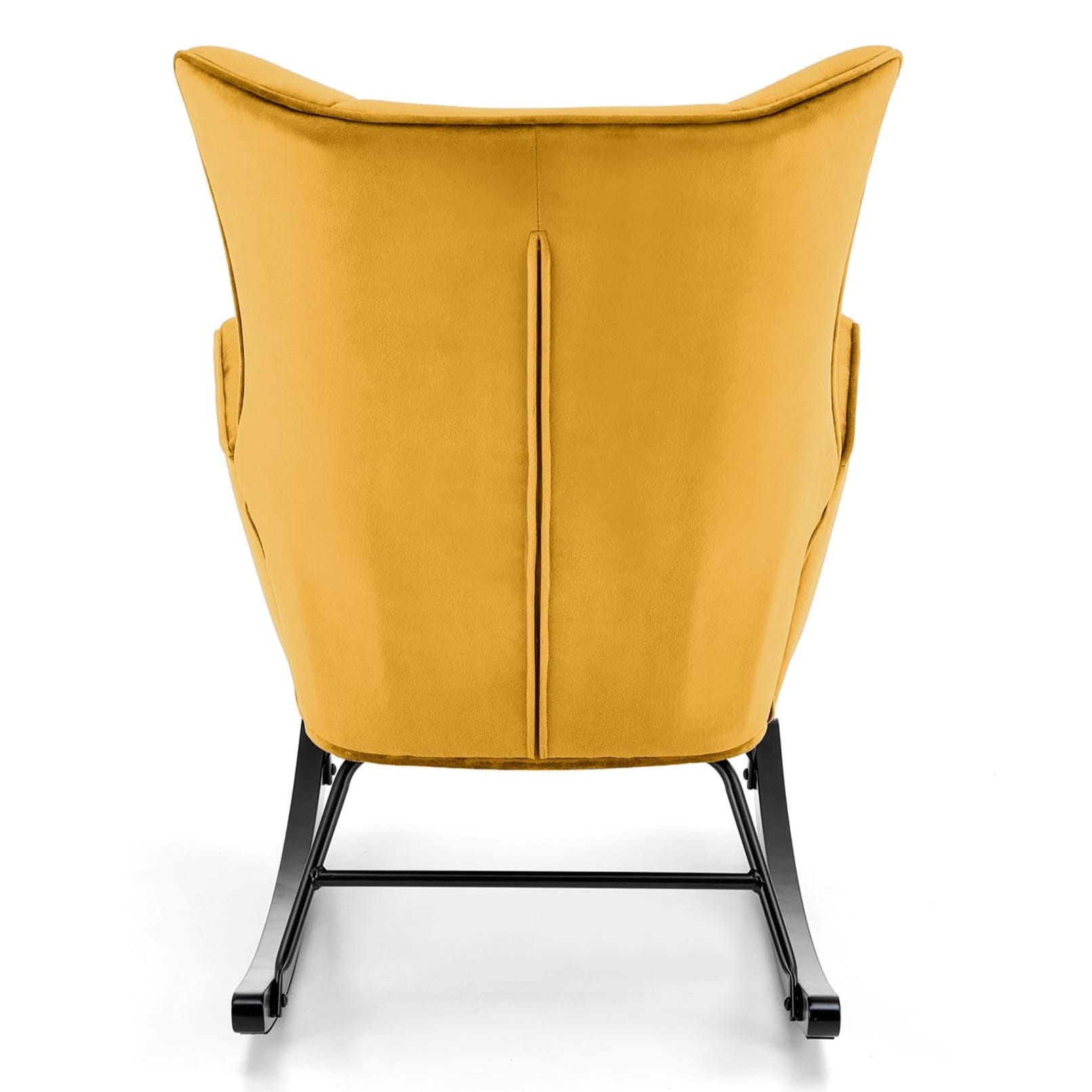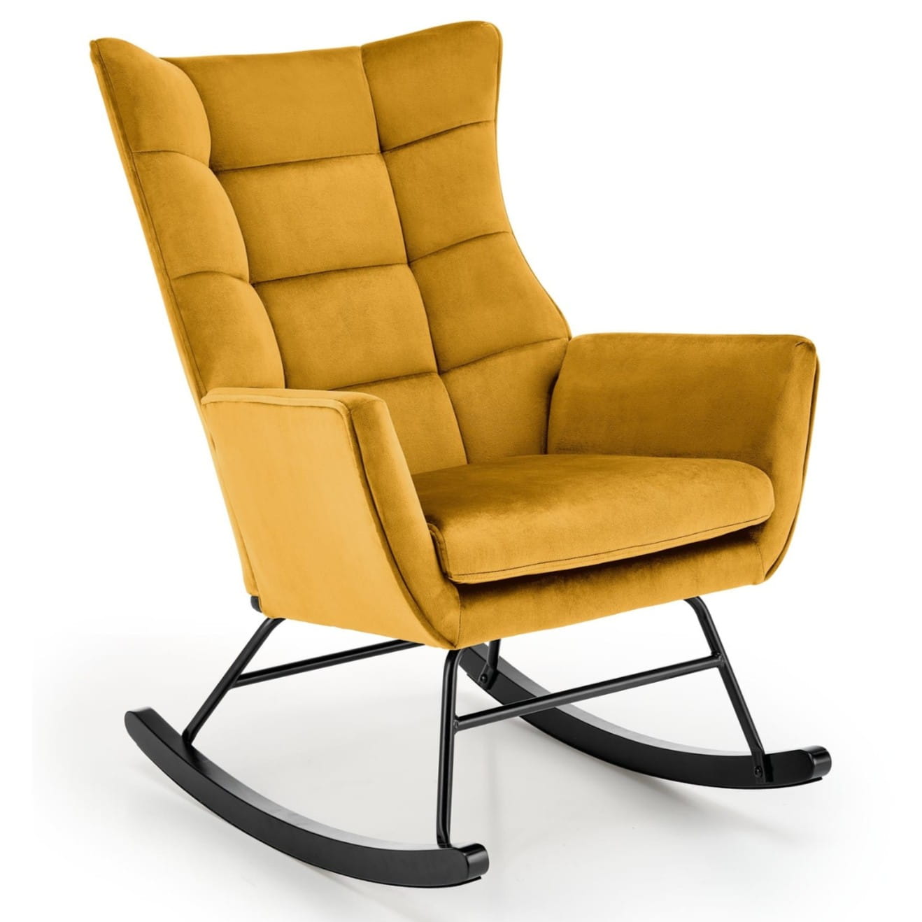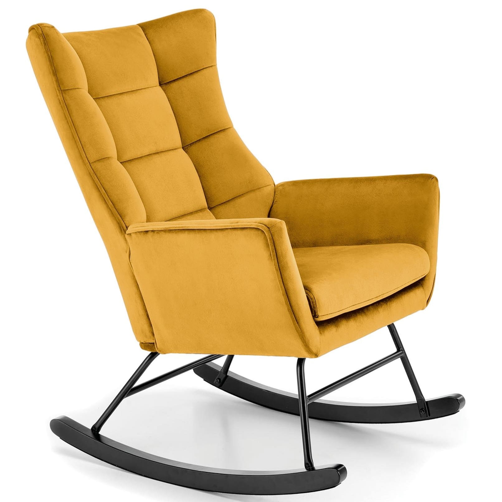 Musztardowy odcień tkaniny pięknie komponuje się z drewnianymi elementami i czarnym stelażem, dlatego fotel doskonale prezentuje się zarówno w jasnych, skandynawskich aranżacjach, jak i w bardziej wyrazistych, loftowych przestrzeniach. Ten fotel bujany na płozach świetnie sprawdzi się jako fotel do czytania, fotel do karmienia czy po prostu Twoje ulubione miejsce relaksu po długim dniu.
