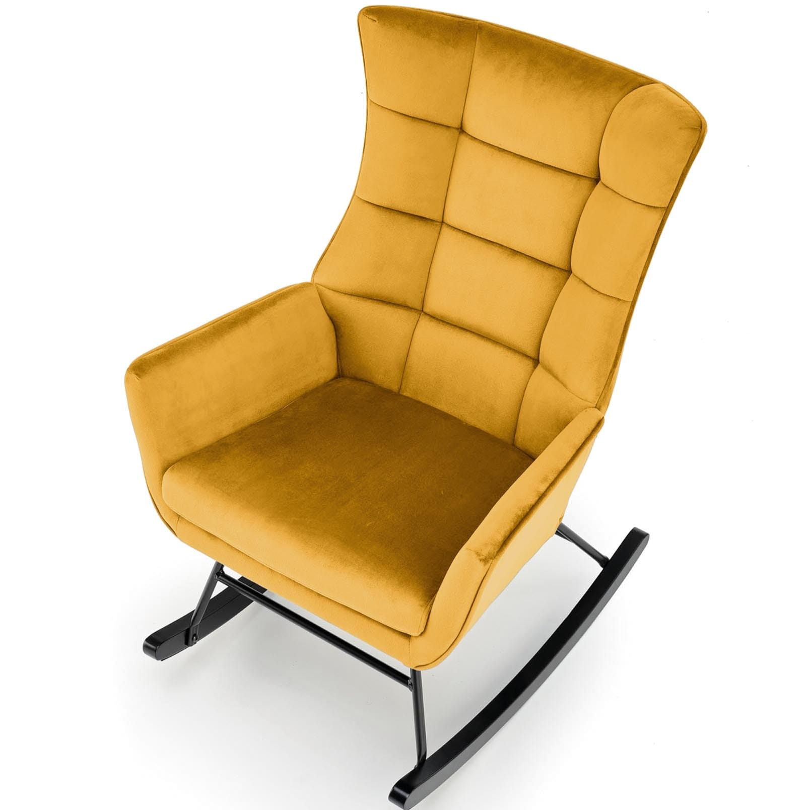 Fotel bujany BAZALTO musztardowy to także świetny sposób na przełamanie neutralnej kolorystyki wnętrza. Jeden wyrazisty mebel potrafi odmienić charakter całego pomieszczenia, nadając mu ciepła i przytulności. Jeśli marzysz o własnym, domowym miejscu wyciszenia, ten fotel bujany velvet pomoże Ci stworzyć wyjątkową, pełną spokoju strefę relaksu.