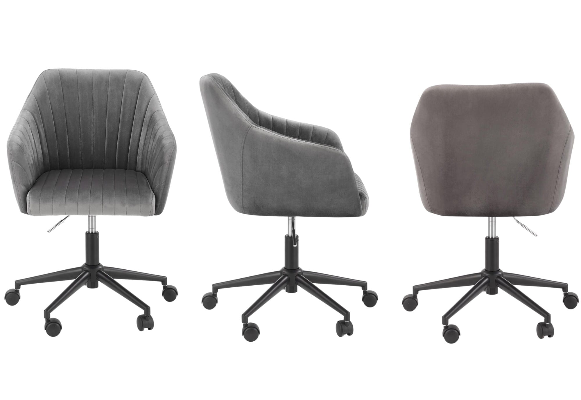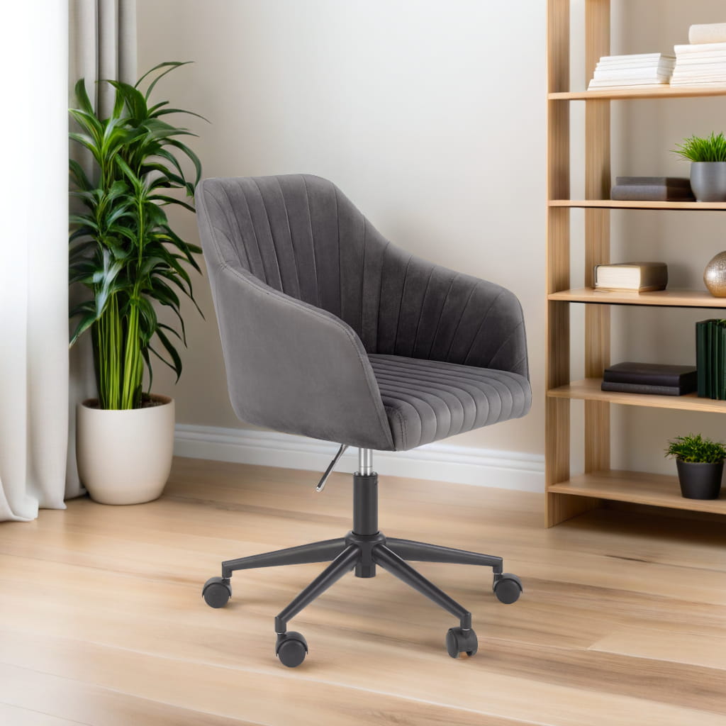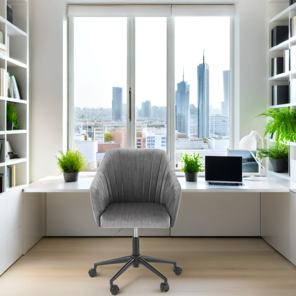 Odkryj fotel biurowy FRESCO szary velvet – połączenie elegancji i wygody w jednym meblu! To stylowe krzesło biurowe obrotowe zachwyca nowoczesnym designem, miękką tapicerką velvet oraz solidnym metalowym stelażem. Idealnie sprawdzi się zarówno w domowym biurze, przy toaletce, jak i w salonie czy gabinecie. Dzięki regulacji wysokości dostosujesz je do swoich potrzeb, a wygodne oparcie i ergonomiczny kształt zapewnią komfort nawet podczas wielogodzinnej pracy.