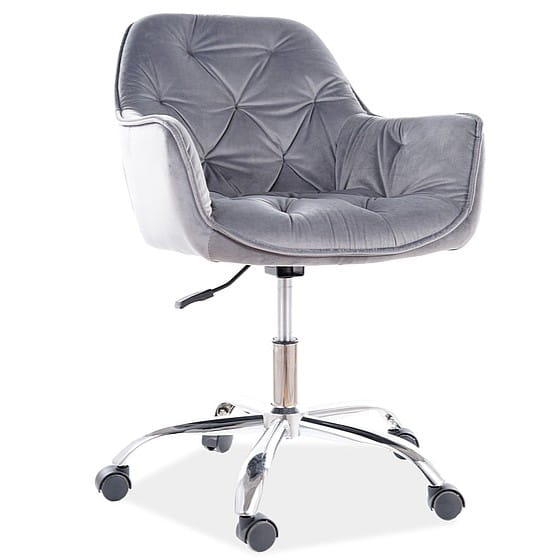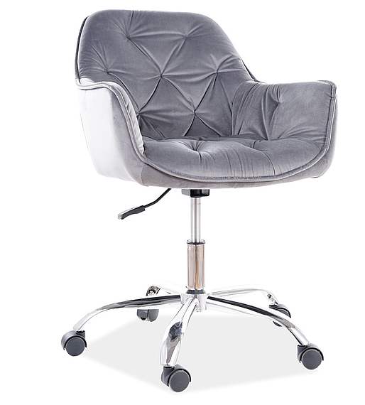 Fotel Q-190 to połączenie eleganckiego wyglądu, nowoczesnych rozwiązań i komfortu użytkowania. Tapicerowany miękką tkaniną welurową Bluvel 14 w kolorze szarym, z ozdobnym pikowaniem i chromowaną podstawą, idealnie wpasuje się w estetykę modnych wnętrz. Fotel został wyposażony w mechanizm TILT umożliwiający regulację wysokości i lekkie bujanie, co wpływa na wygodę podczas długiego siedzenia.