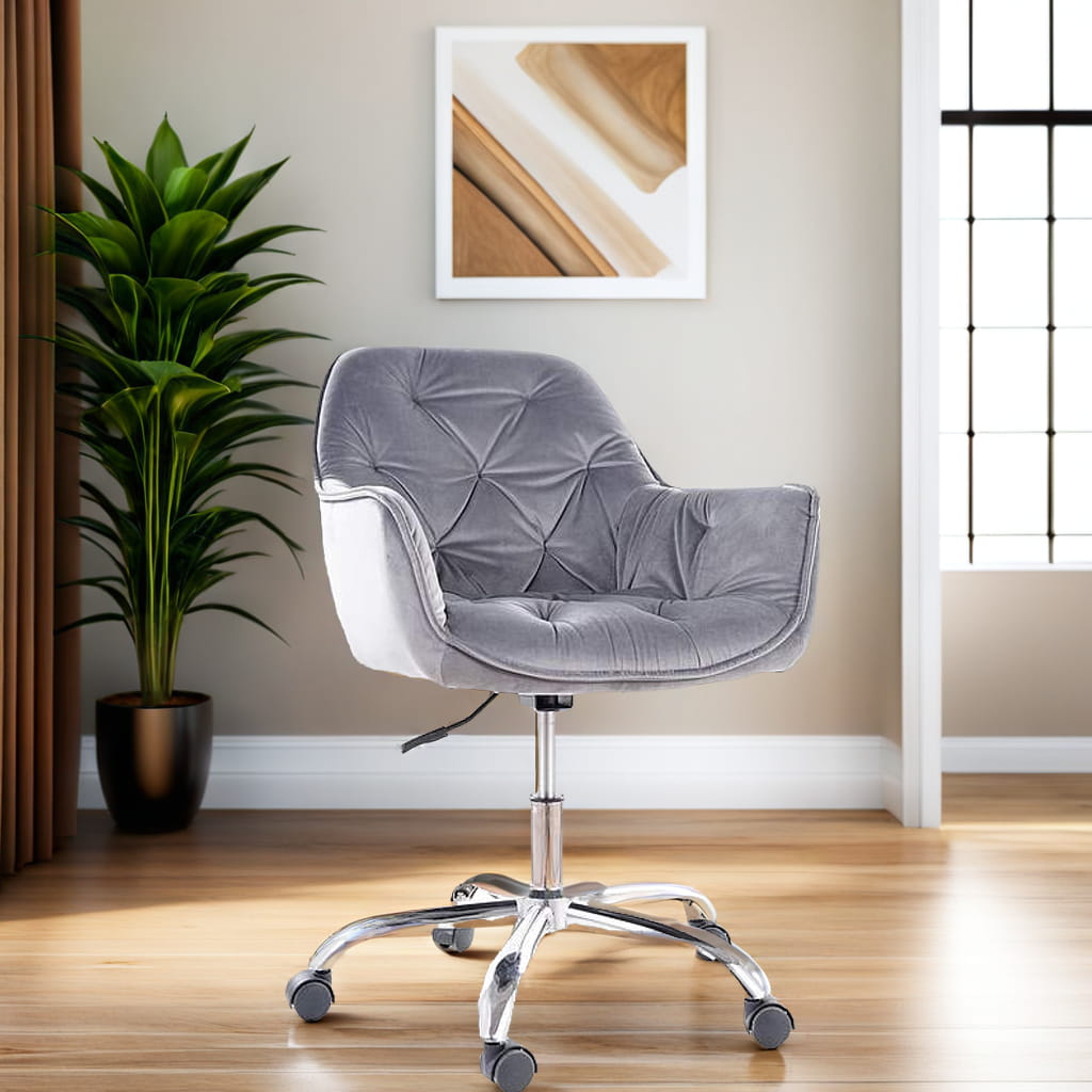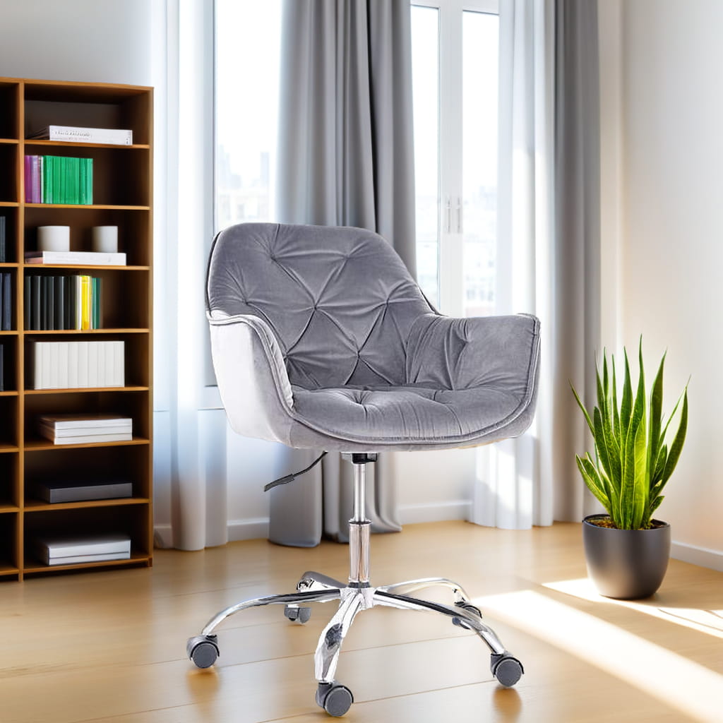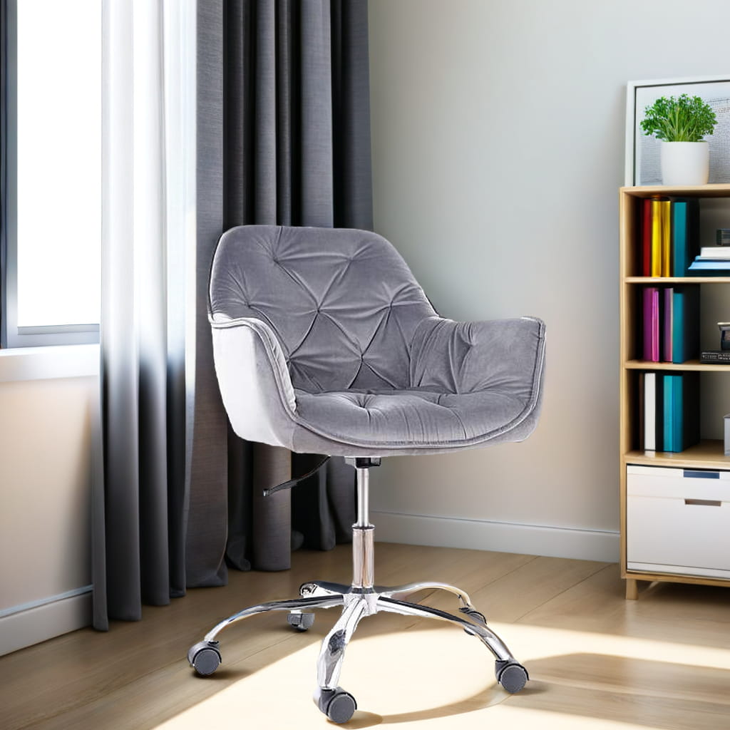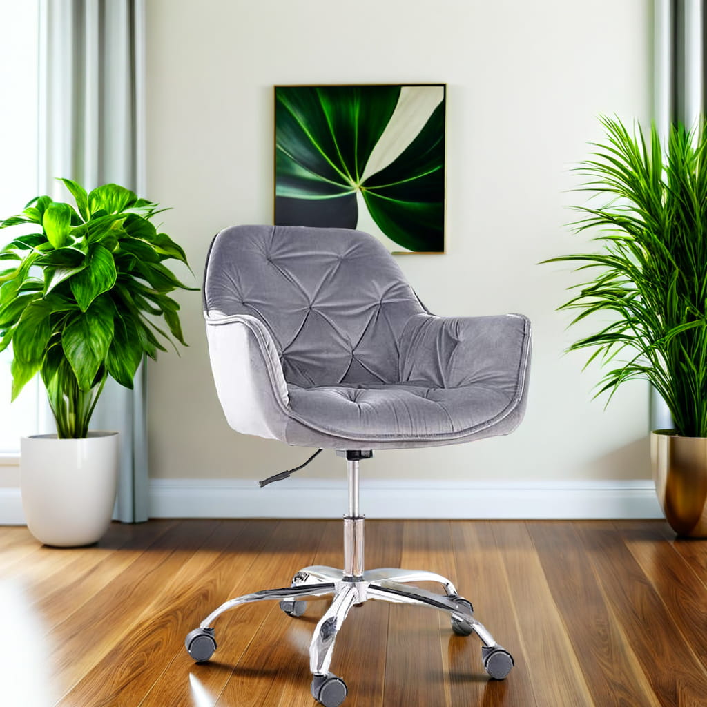 ✨ Stylowy fotel obrotowy Q-190 – szary welur i chromowana podstawa
