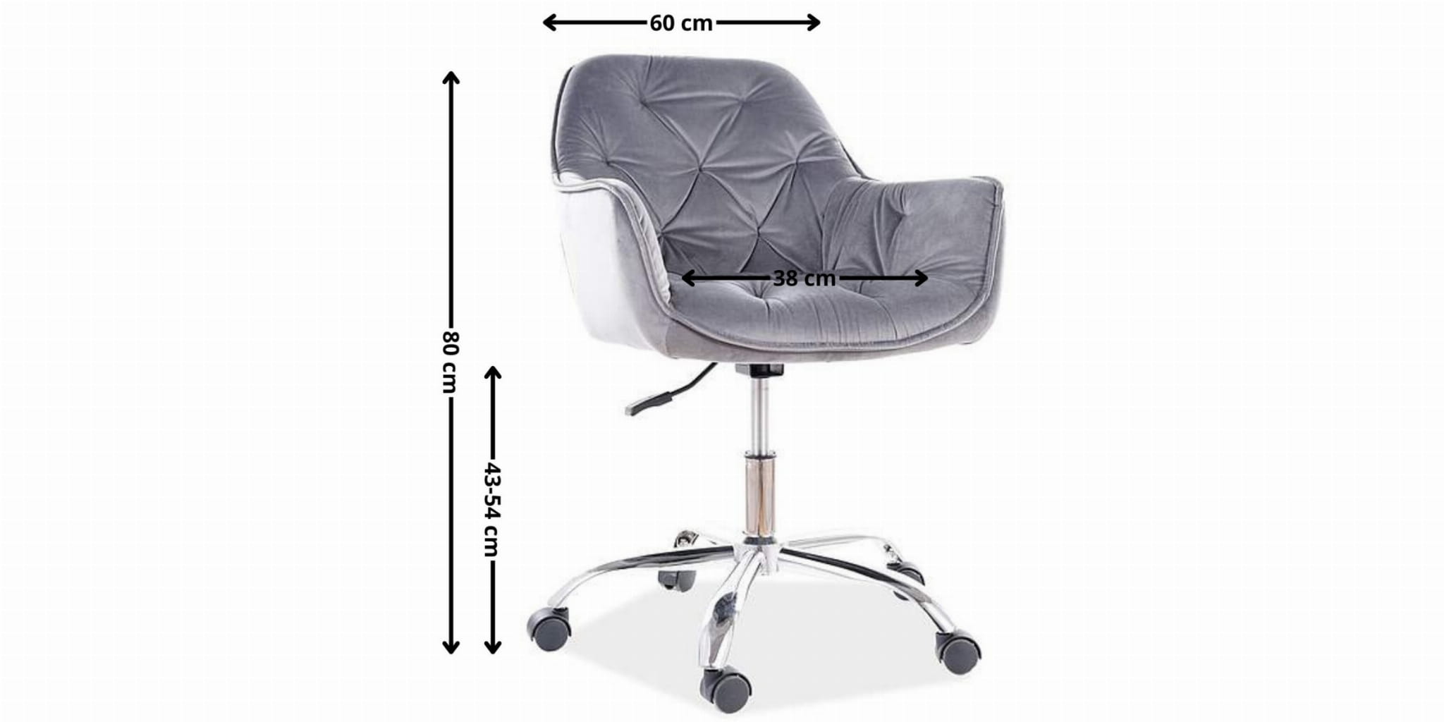 Model wyposażono w mechanizm TILT, który umożliwia regulację wysokości oraz delikatne kołysanie, co zwiększa komfort podczas wielogodzinnego użytkowania. Chromowana podstawa dodaje całości lekkości i współczesnego charakteru, tworząc idealne zestawienie z szarym siedziskiem.