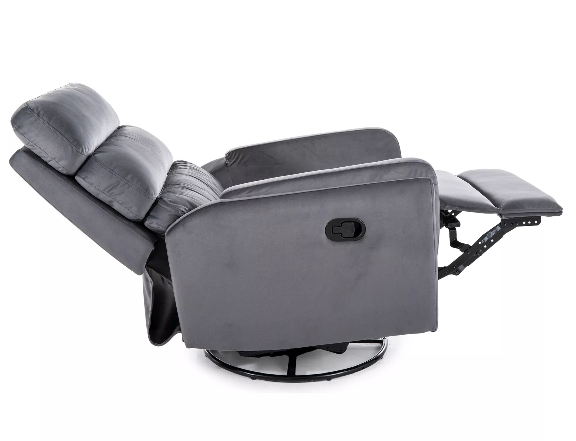 ✨ fotel rozkładany z funkcją kołyski ARGOS – komfortowy fotel wypoczynkowy velvet szary z obrotem 360°