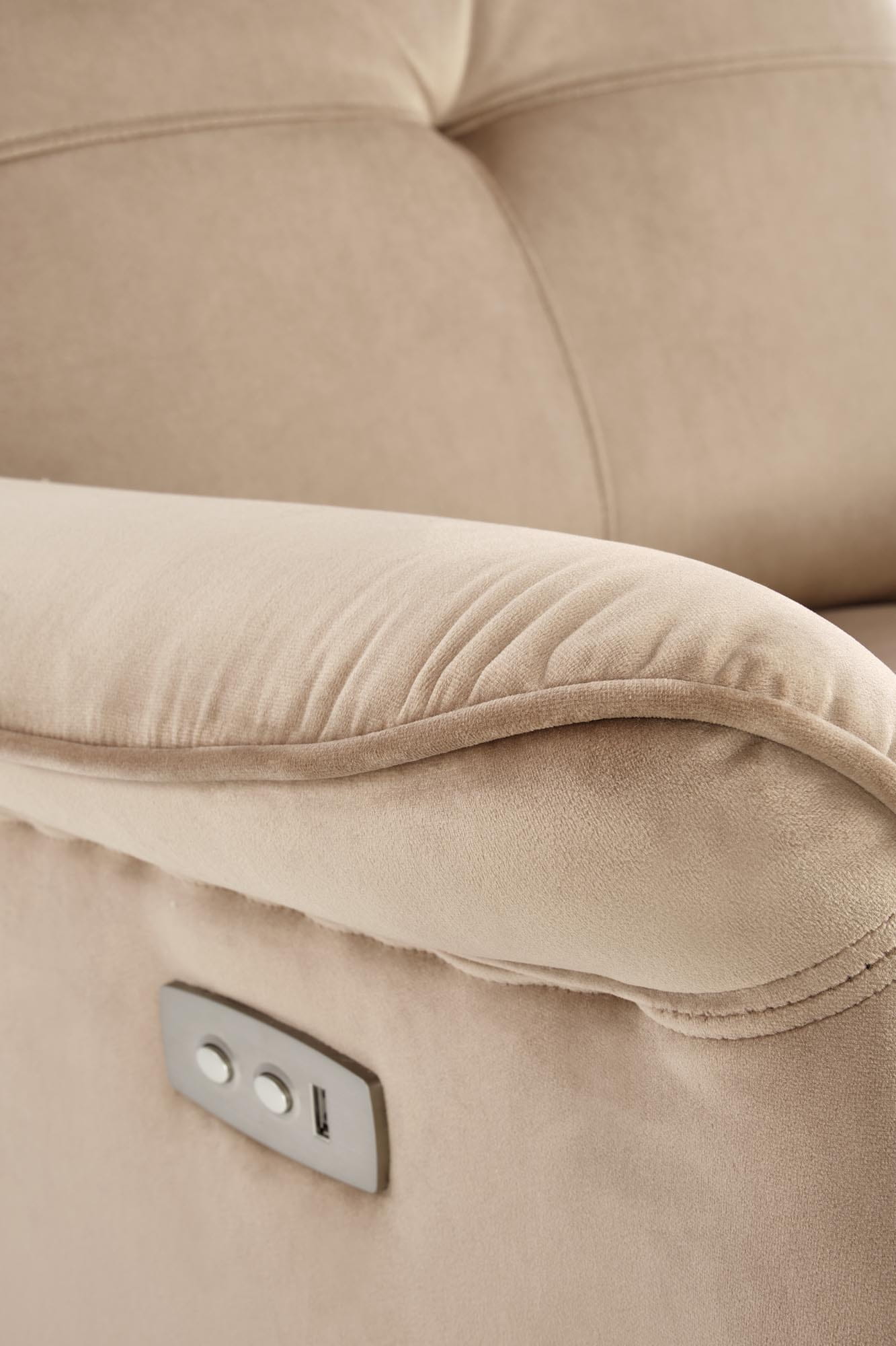 Fotel rozkładany elektrycznie SEMIR beżowy to połączenie eleganckiego designu i nowoczesnej funkcjonalności. Wykonany z miękkiej tkaniny welurowej, zapewnia maksymalny komfort podczas odpoczynku. Dzięki praktycznej funkcji rozkładania elektrycznego i wbudowanemu gniazdu USB, staje się idealnym wyborem dla osób ceniących wygodę, relaks i nowoczesne rozwiązania.