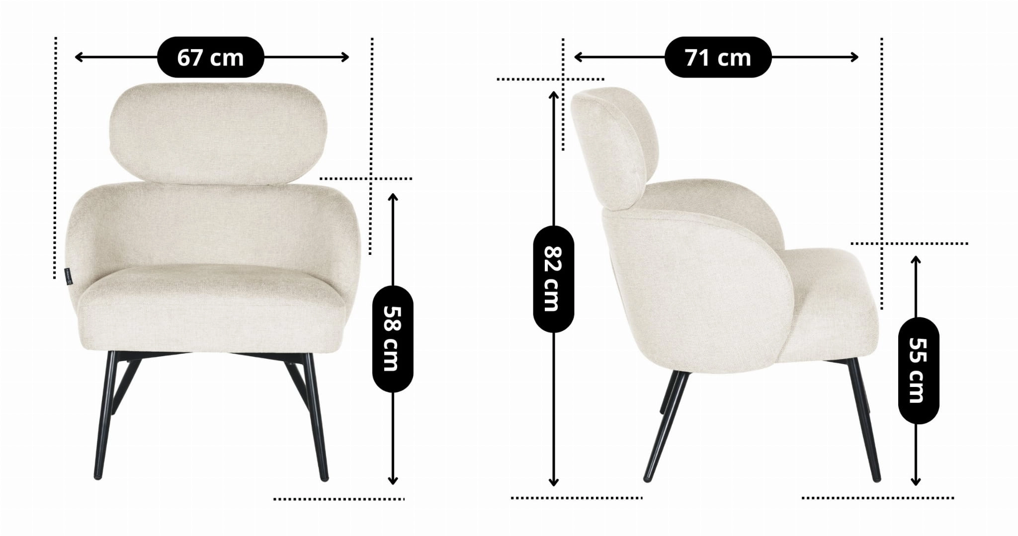- Wysokość podłokietnika od podłogi: 58 cm