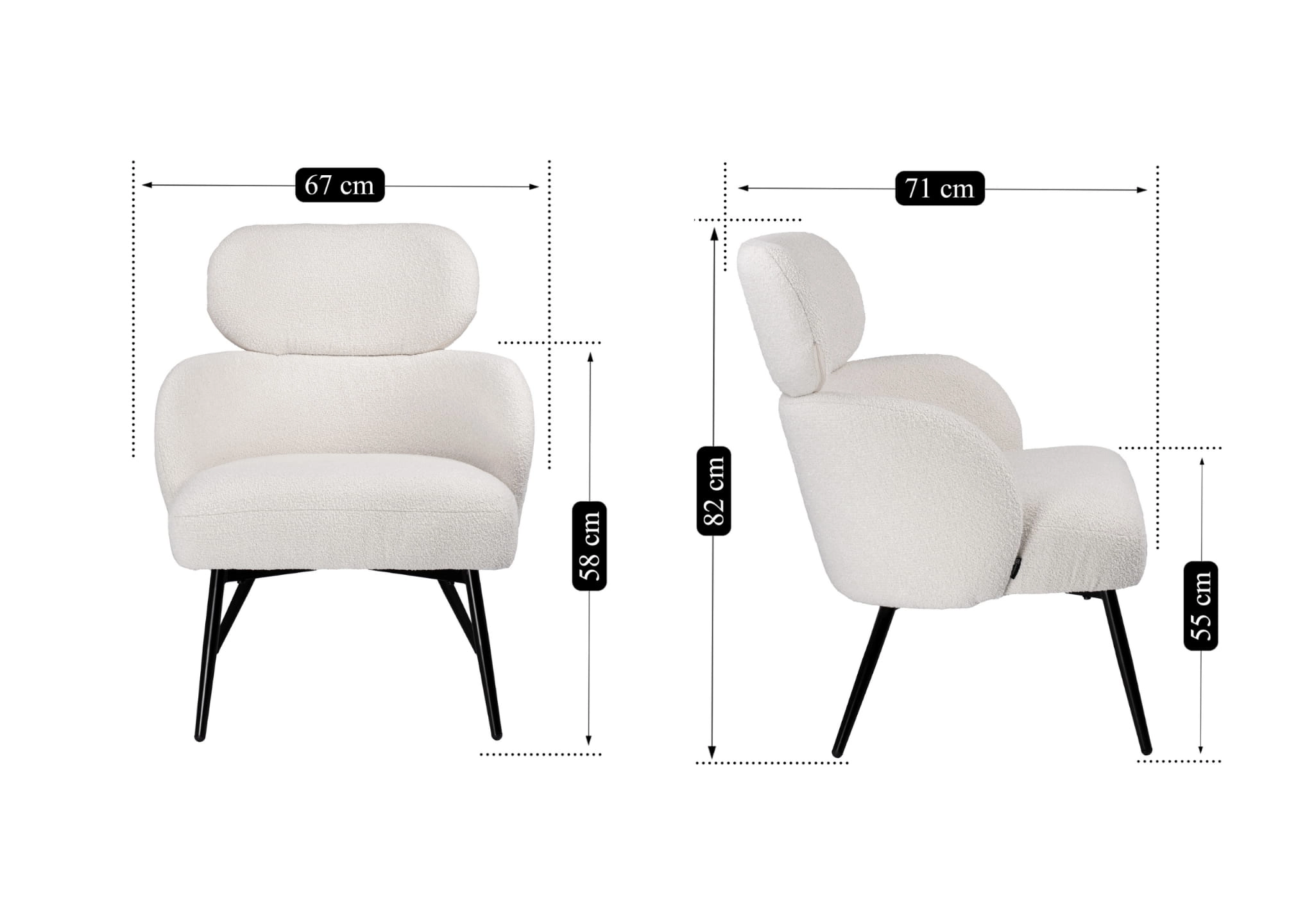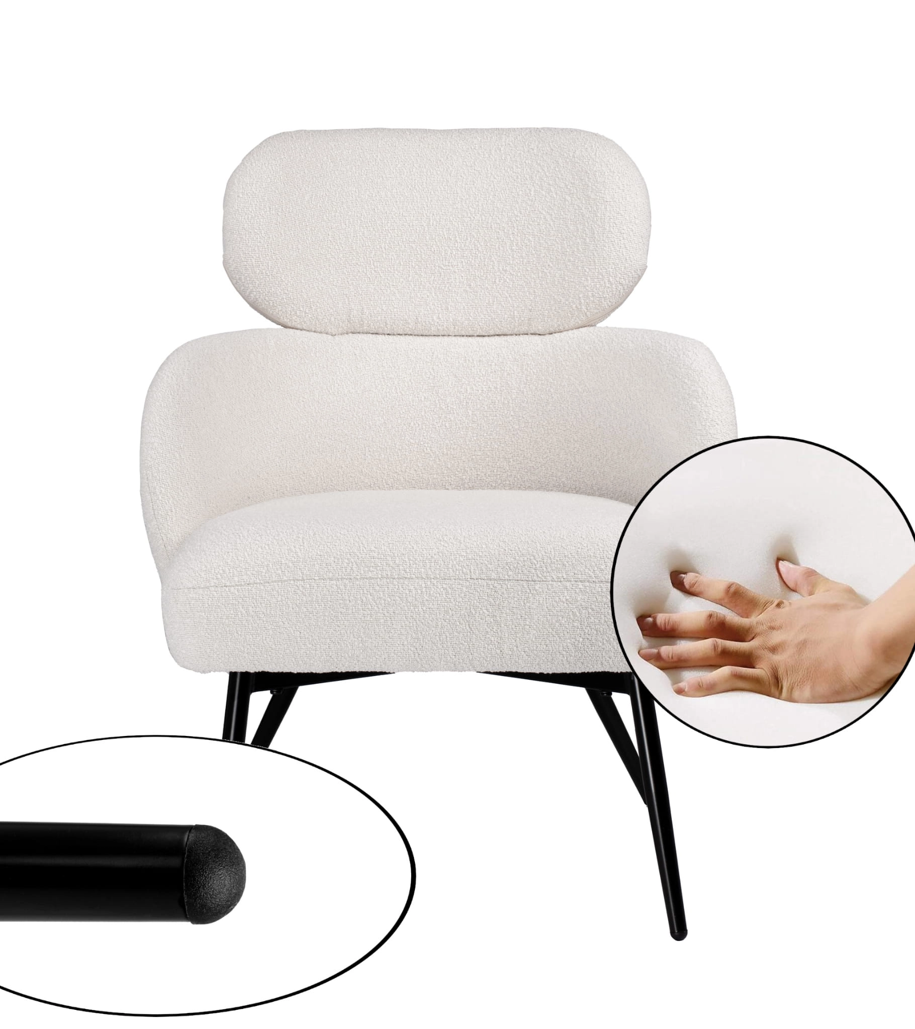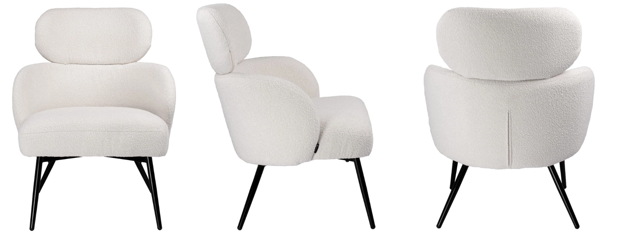 Fotel wypoczynkowy kubełkowy z podłokietnikami NESS tkanina boucle 995-01
