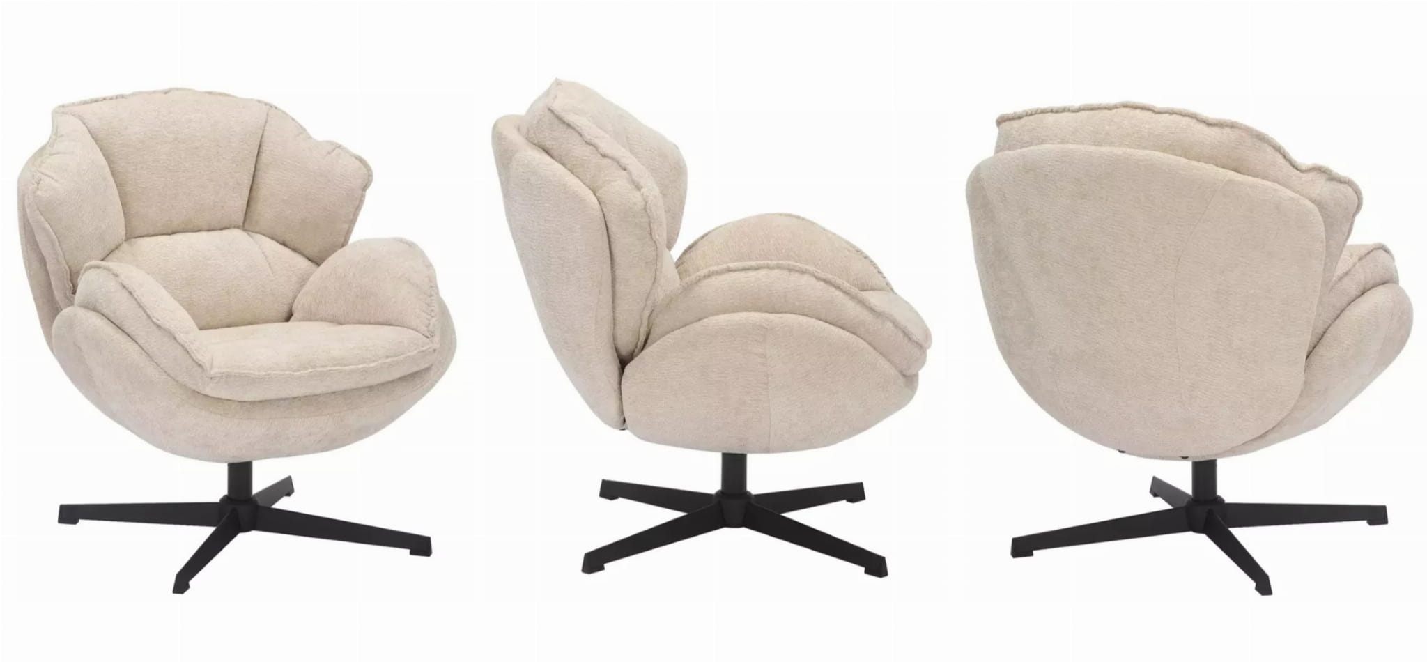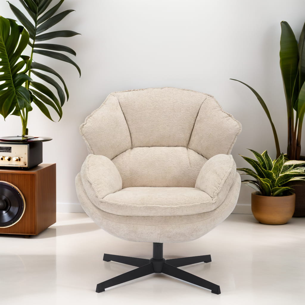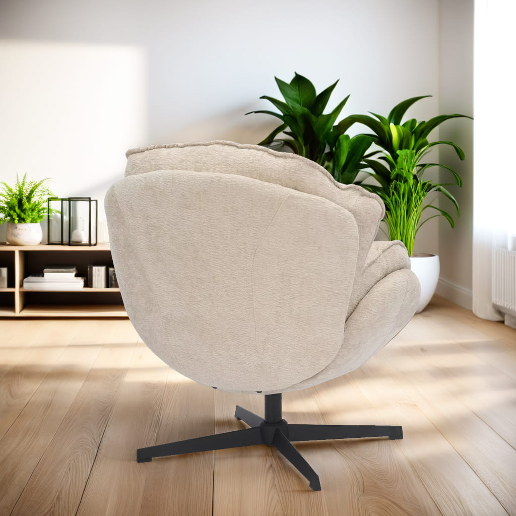 Miękka, przyjemna w dotyku tapicerka w połączeniu z ergonomicznym kształtem daje maksymalny komfort, niezależnie od tego, czy czytasz książkę, odpoczywasz po pracy, czy spędzasz czas z bliskimi. Solidny metalowy stelaż zapewnia stabilność, a obrotowa funkcja 360° zwiększa funkcjonalność i wygodę użytkowania.