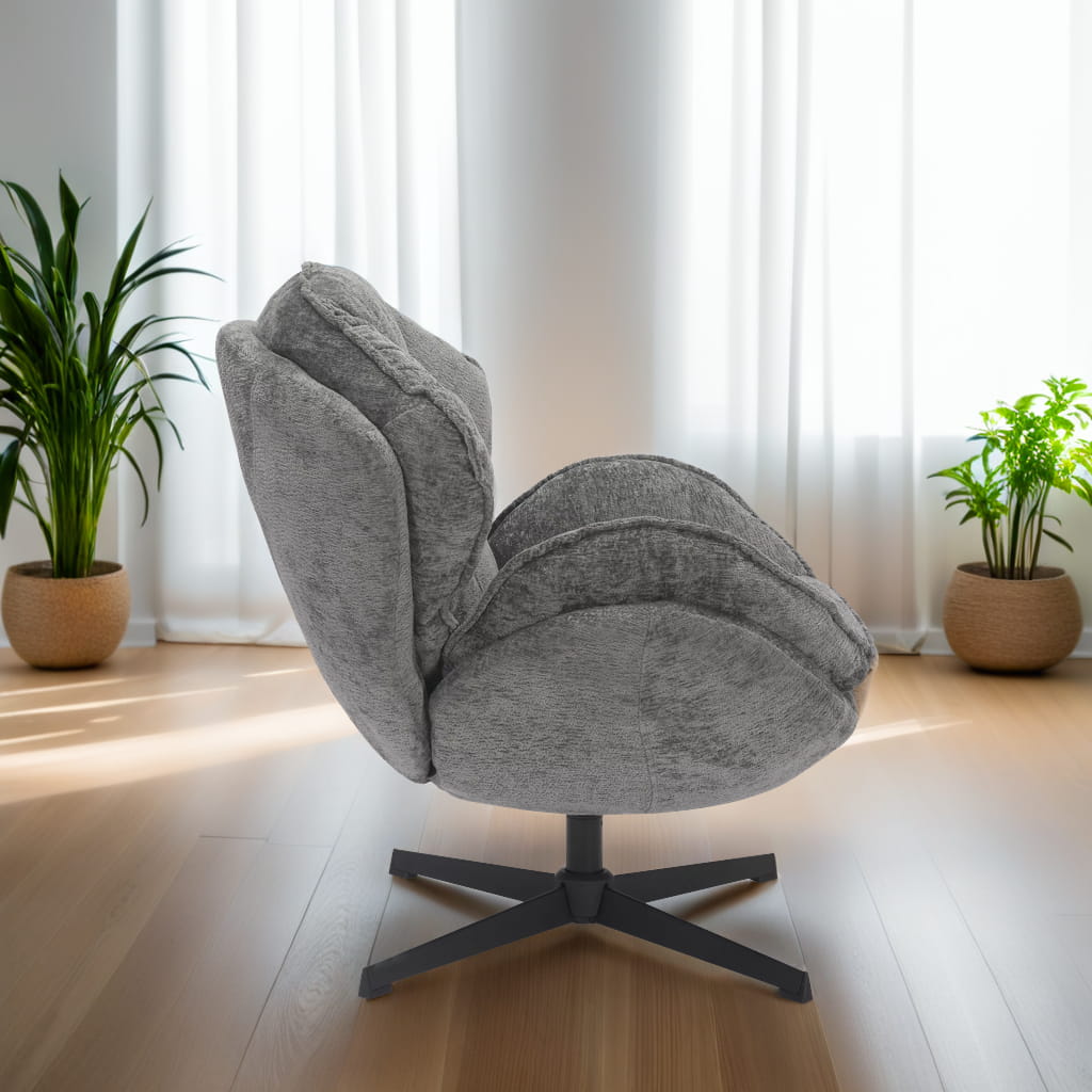 Fotel obrotowy BETTY w eleganckim szarym kolorze to wyjątkowa propozycja dla osób poszukujących idealnego balansu między wygodą a nowoczesnym designem. Miękka tapicerka w odcieniu szarym oraz stabilny metalowy stelaż zapewniają długotrwałą satysfakcję z użytkowania. Ten fotel wypoczynkowy do salonu wyróżnia się ergonomią, wysoką jakością wykonania i uniwersalnym stylem, który z łatwością wpasuje się w wiele aranżacji.