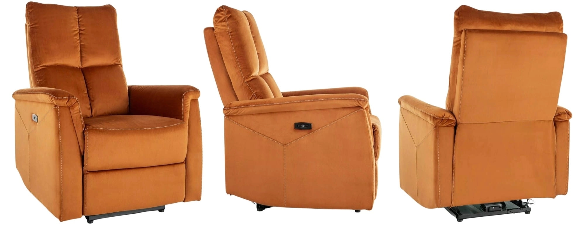 Ten zaawansowany elektryczny fotel wypoczynkowy został stworzony z myślą o osobach, które po intensywnym dniu potrzebują regeneracji w domowym zaciszu. Cynamonowy odcień aksamitu wprowadza do wnętrza energię i ciepło, a wbudowany system masażu sprawia, że każda chwila odprężenia dla pleców staje się rytuałem regeneracji. To model, który łączy nowoczesną technologię z niezwykłą dbałością o komfort użytkownika.
