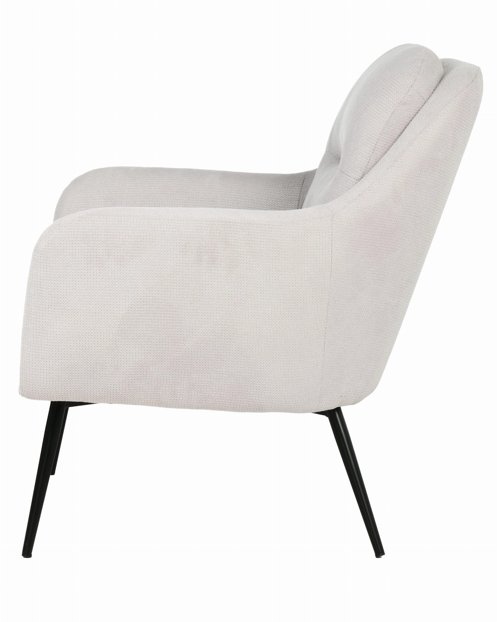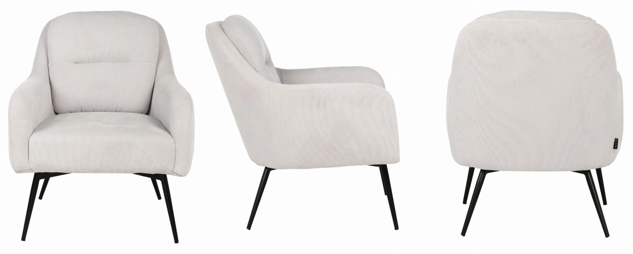 Fotel MERT to synonim komfortu i stylu – w nowoczesnym wydaniu. Pokryty elegancką tkaniną w jasnoszarym kolorze, z czarnymi metalowymi nogami, doskonale komponuje się z wieloma aranżacjami. To idealny fotel wypoczynkowy do salonu, sypialni lub przestrzeni biurowej. Stonowana kolorystyka i kompaktowa forma sprawiają, że odnajdzie się w każdej przestrzeni.