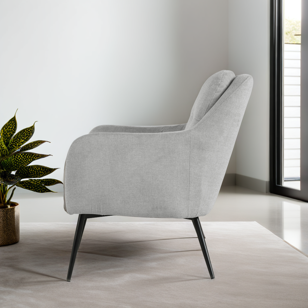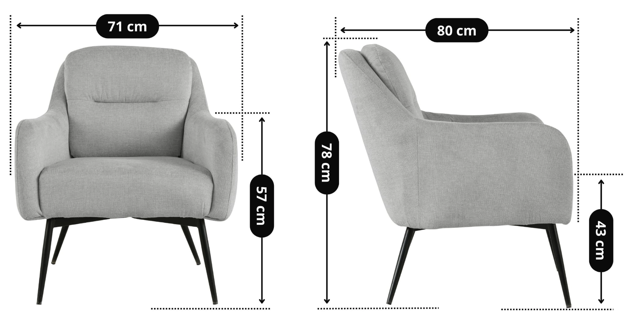 MERT to połączenie wygody i ponadczasowego stylu. Miękka tapicerka z tkaniny otula, a smukłe metalowe nogi nadają lekkości całej bryle. Dzięki swoim proporcjom fotel prezentuje się elegancko nawet w niewielkiej przestrzeni, zapewniając komfortowe miejsce do czytania, pracy z laptopem czy popołudniowego relaksu. Neutralny szary fotel do salonu doskonale współgra z naturalnymi materiałami, a jego wysokość siedziska 43 cm pasuje do większości stolików pomocniczych. To idealny wybór, gdy chcesz wprowadzić do wnętrza przytulność bez rezygnacji z nowoczesnej prostoty.