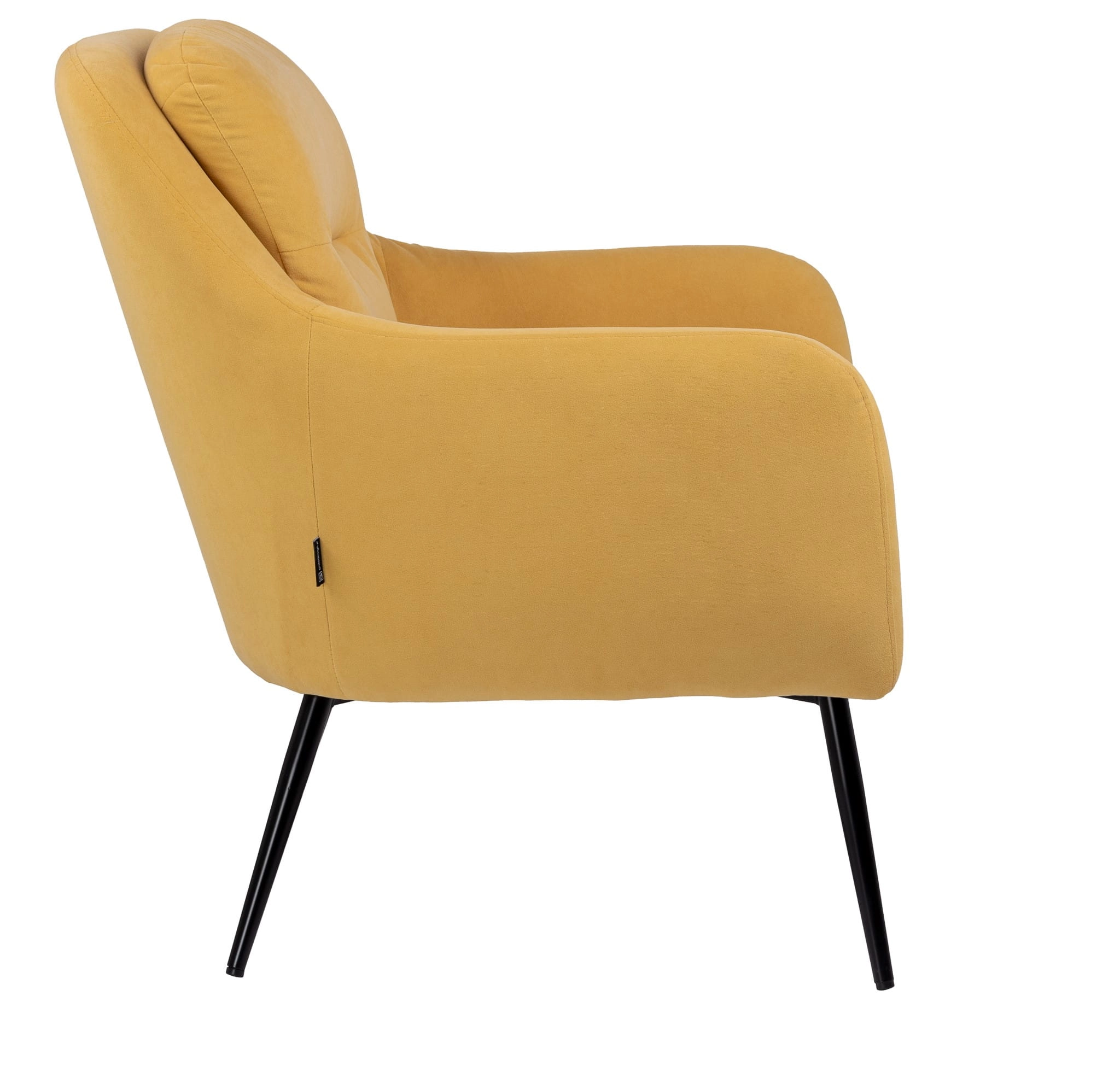 Fotel MERT w intensywnym żółtym kolorze to prawdziwy hit nowoczesnych aranżacji. Pokryty tapicerką z wysokiej jakości tkaniny i oparty na stabilnych czarnych nogach z metalu, doskonale sprawdzi się jako fotel wypoczynkowy do salonu, sypialni czy biura. Jego kolor dodaje wnętrzu pozytywnej energii, a forma zapewnia relaks na najwyższym poziomie.