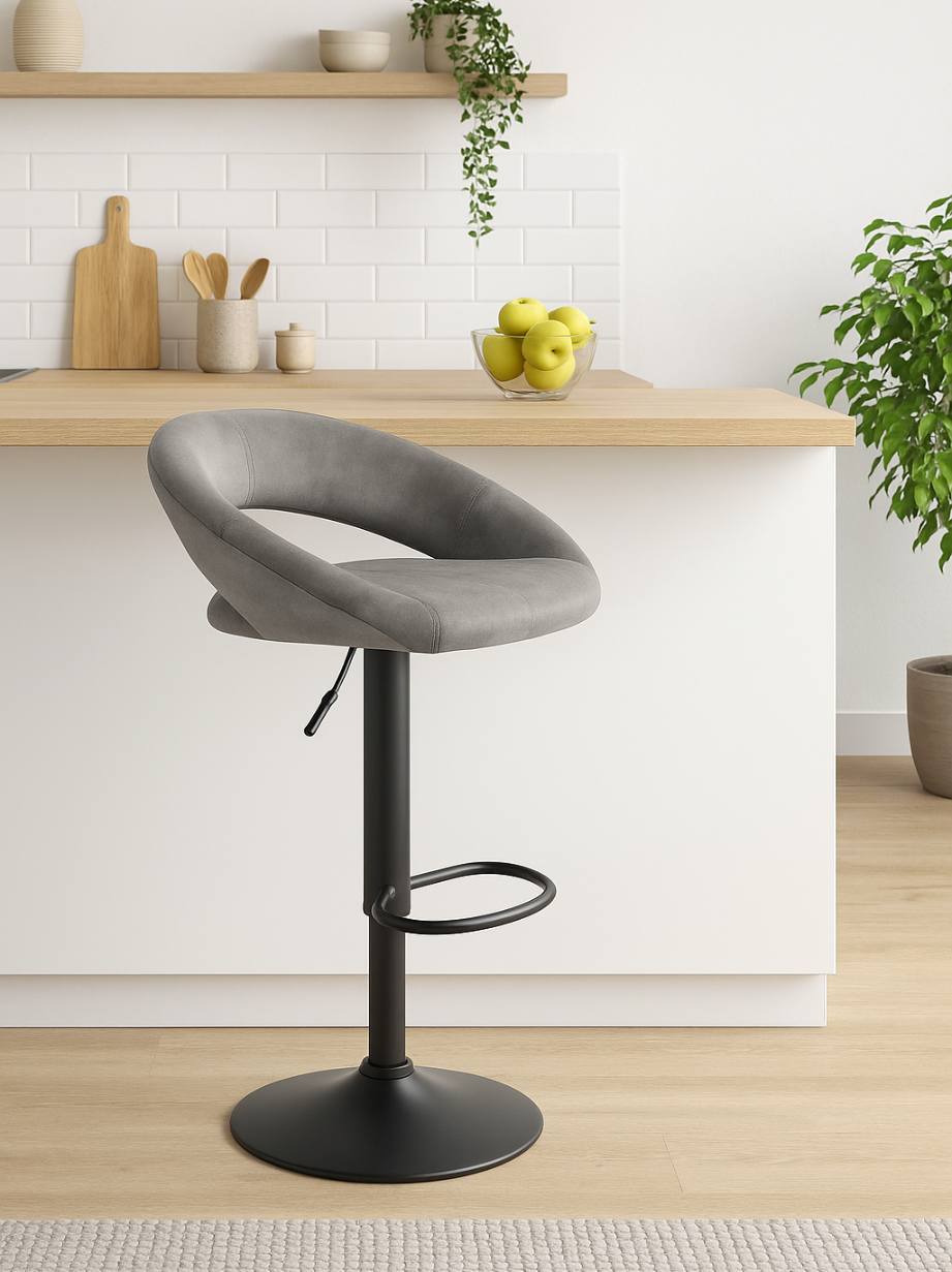 Hoker H102 to mebel stworzony z myślą o tych, którzy cenią design, komfort i funkcjonalność. Tapicerowany przyjemną w dotyku tkaniną velvet w odcieniu popielatym, wyposażony w mechanizm obrotowy i płynną regulację wysokości, doskonale sprawdzi się przy wyspie kuchennej, nowoczesnym barze czy eleganckiej toaletce. Czarny stalowy stelaż dopełnia jego nowoczesny charakter.