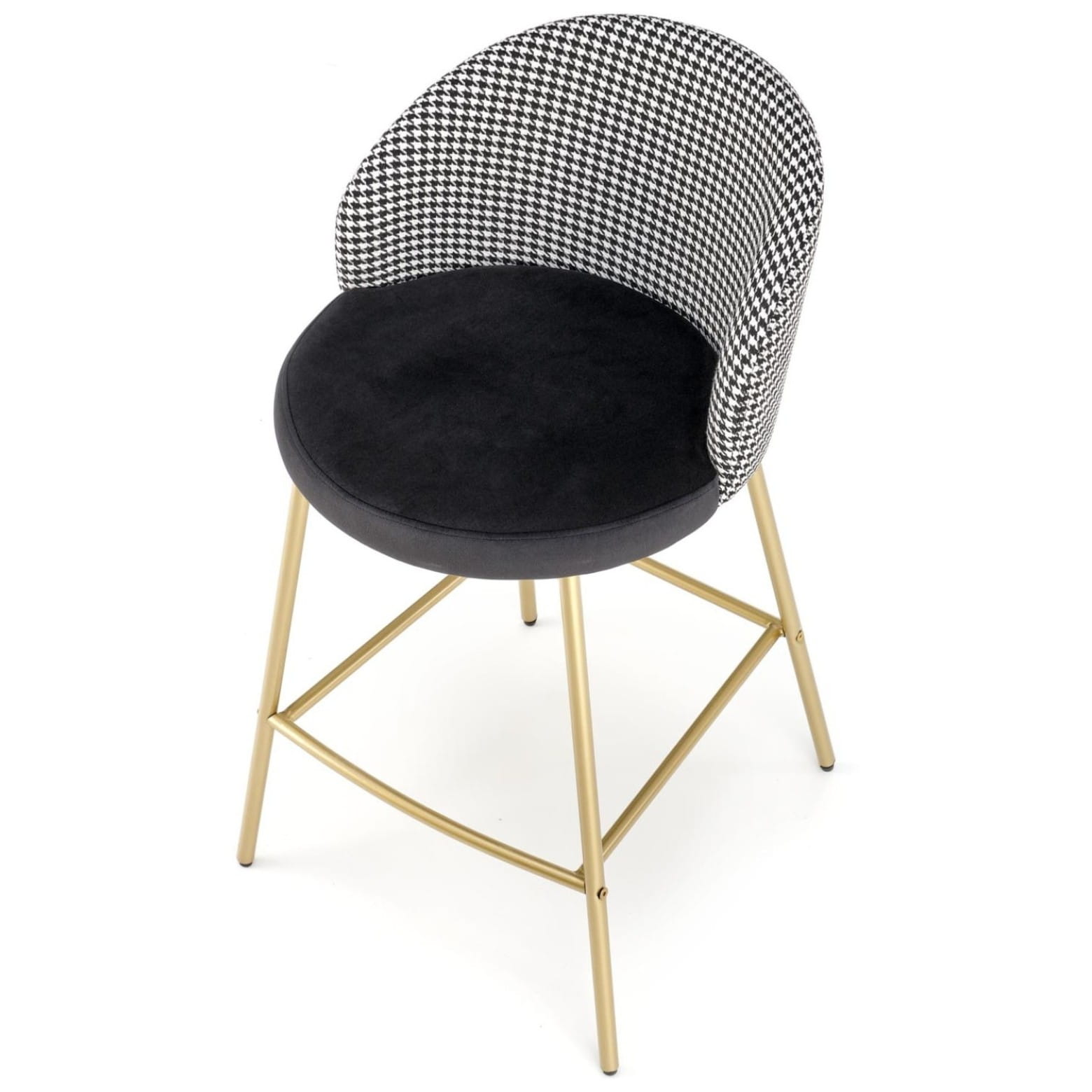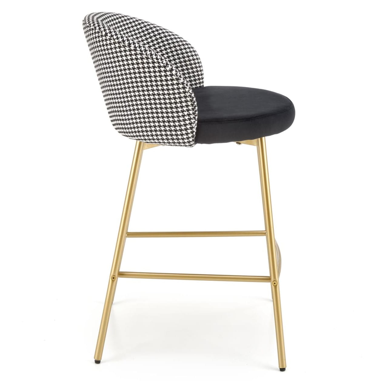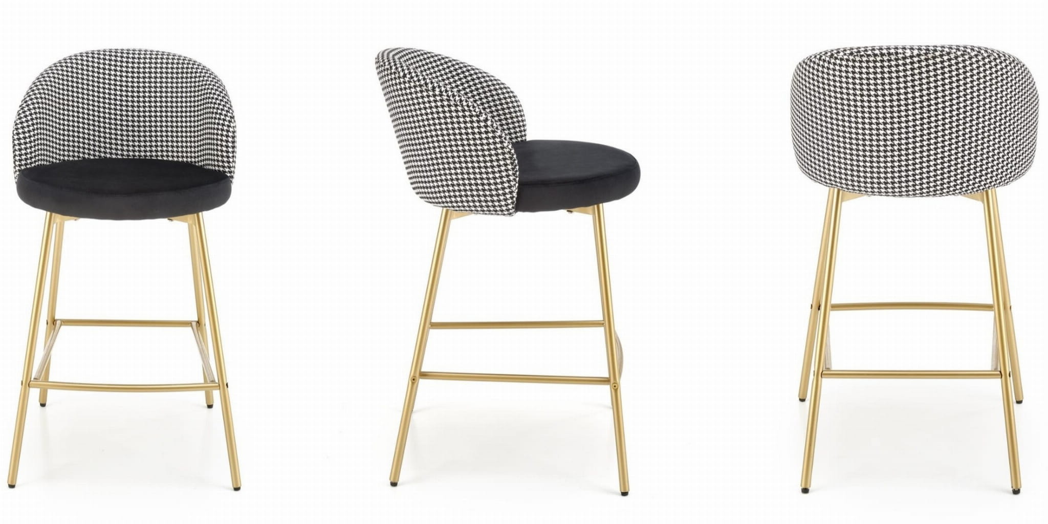 Hoker, krzesło barowe H113 pepitka, złoty stelaż