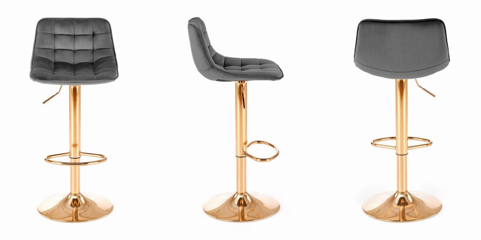 ✨ Hoker barowy H120 popiel ze złotym stelażem – elegancja i komfort