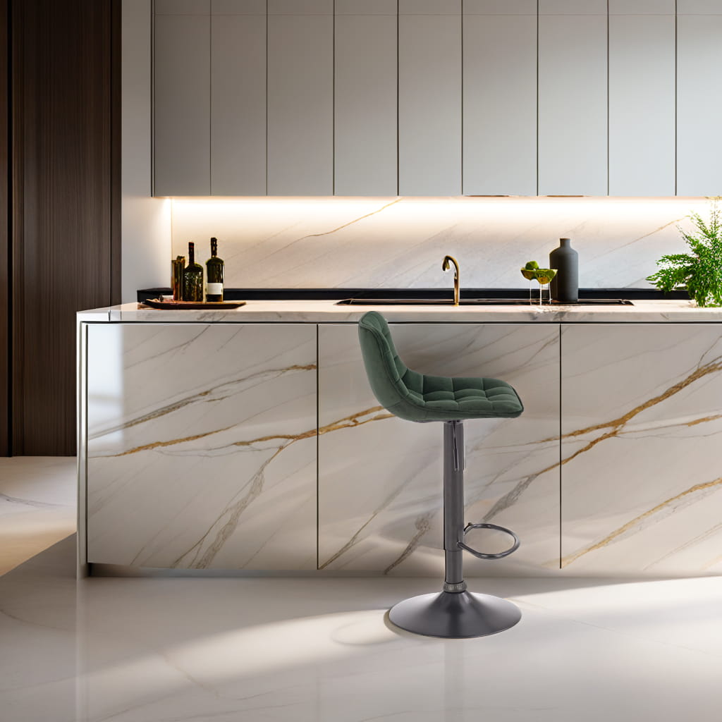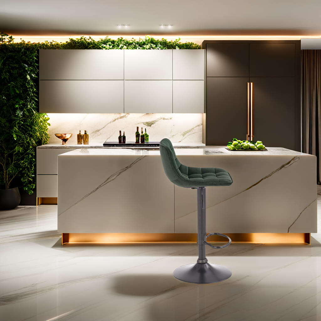 Wybierz zielony hoker velvet z funkcją regulacji i wnieś do swojego wnętrza nowoczesną elegancję, która zachwyci każdego domownika i gościa.