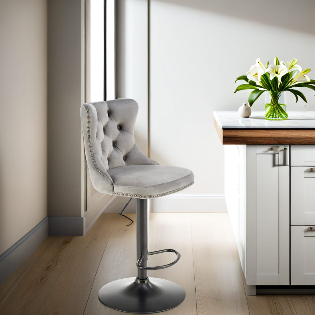 Hoker obrotowy H117 to połączenie komfortu, stylu i funkcjonalności w jednym eleganckim meblu. Dzięki regulacji wysokości oraz miękkiej tapicerce z tkaniny velvet, hoker ten doskonale sprawdzi się zarówno przy wyspie kuchennej, jak i w nowoczesnym barze czy domowym biurze. Solidna, stalowa konstrukcja malowana proszkowo gwarantuje trwałość, a uniwersalna szarość tapicerki harmonizuje z wieloma aranżacjami wnętrz.