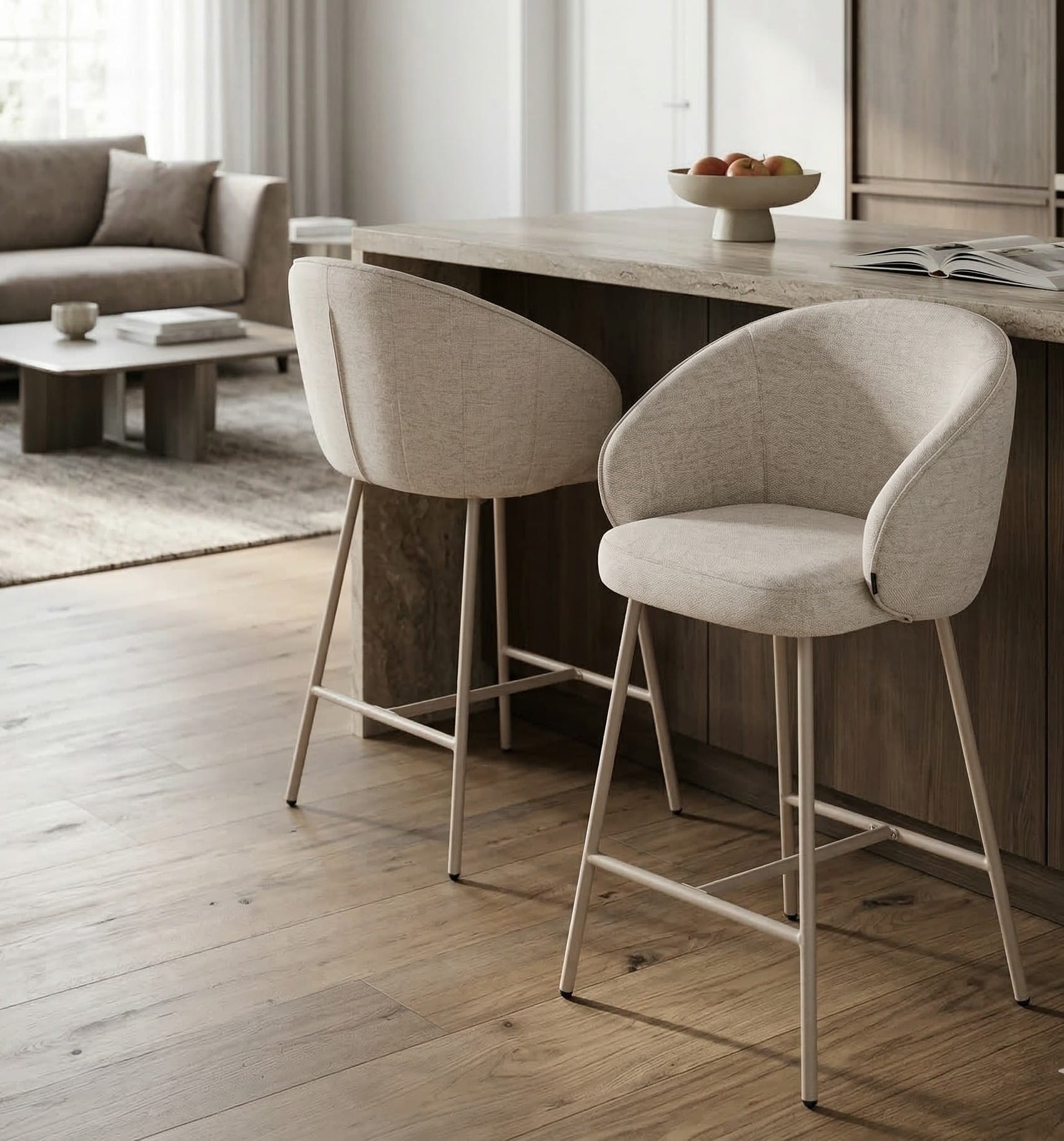 Wybierając hoker tapicerowany beżowy OTILO, stawiasz na minimalistyczny design i sprawdzoną ergonomię. To doskonały hoker do kuchni z wyspą lub do jadalni, który łączy komfort użytkowania z elegancją wykonania. Tapicerowane siedzisko otulone miękką tkaniną i stabilna konstrukcja z metalowych nóg to gwarancja jakości, którą doceni każdy domownik i gość.