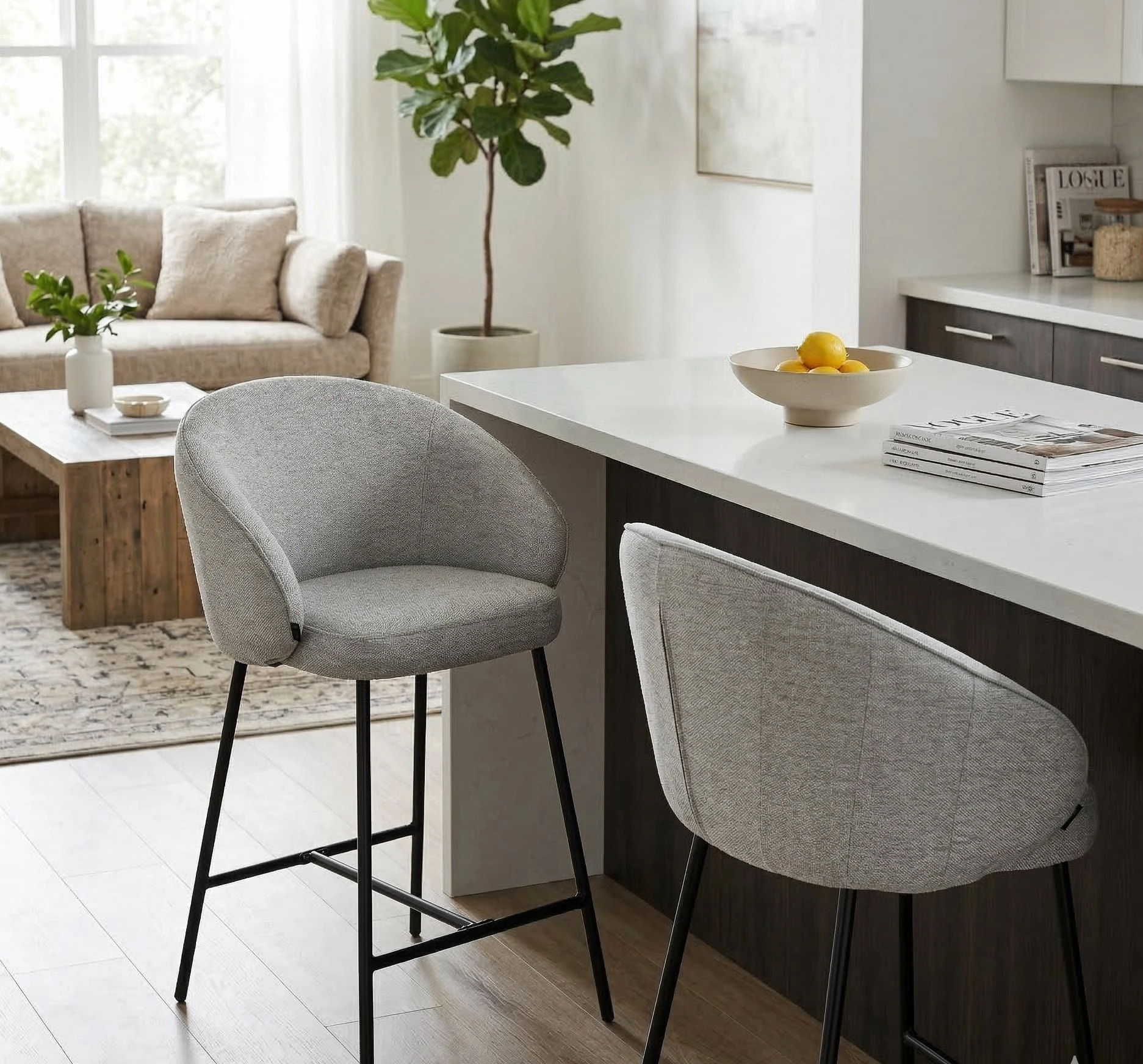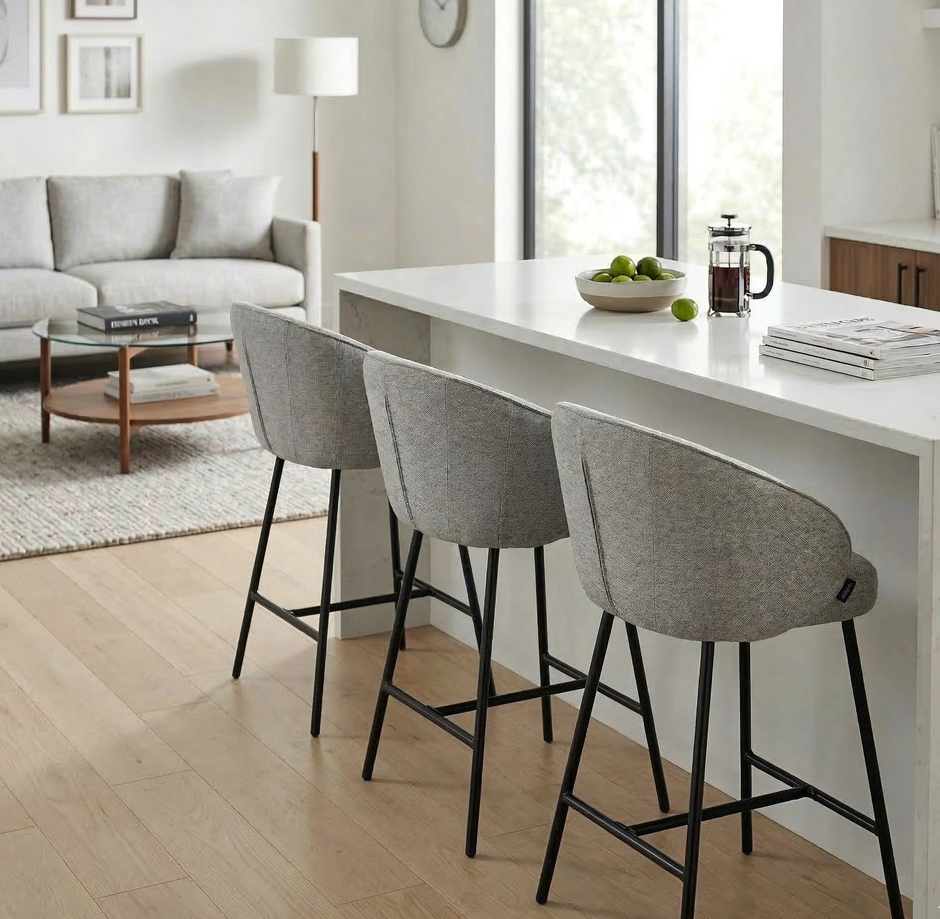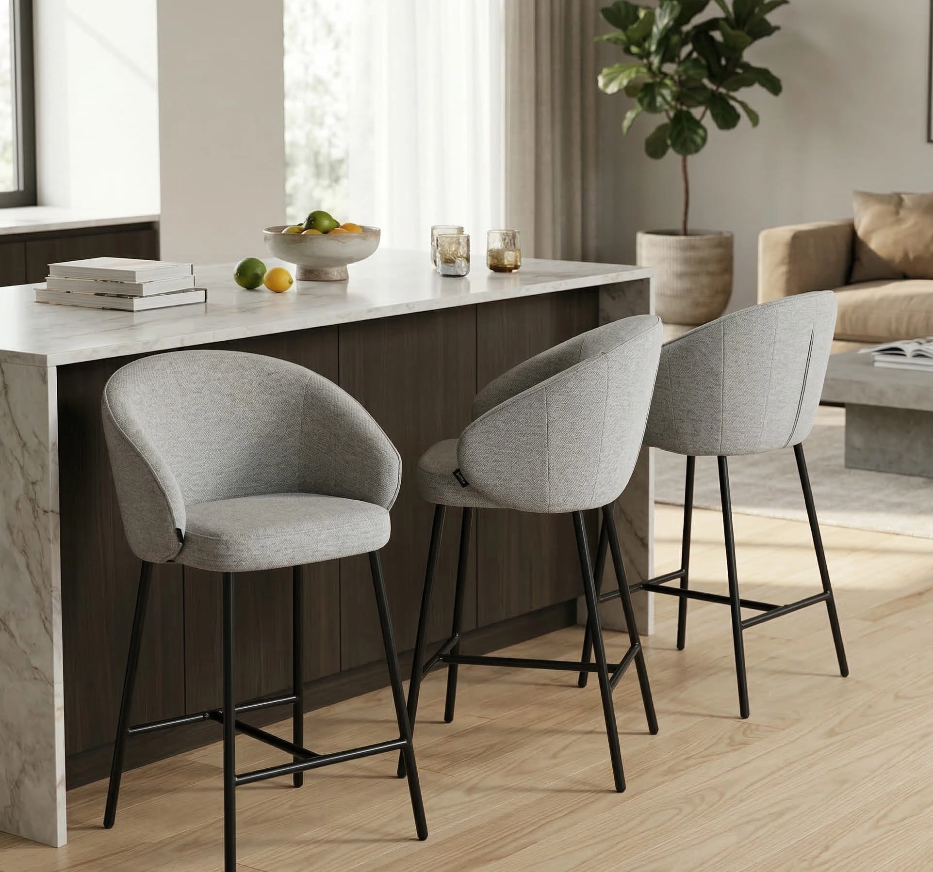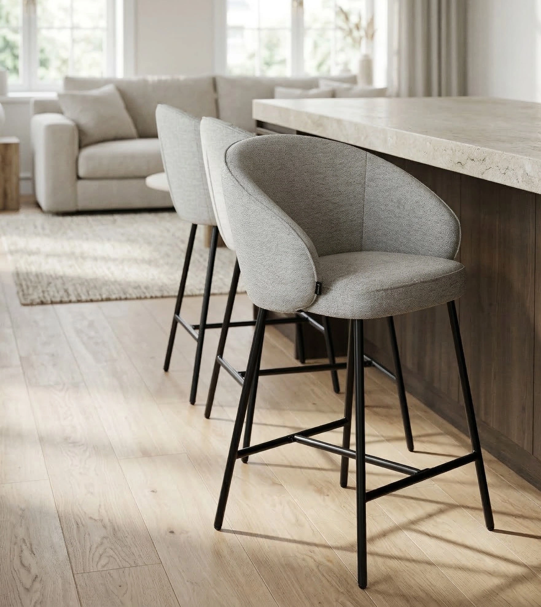 Wybierając hoker tapicerowany beżowy OTILO, stawiasz na minimalistyczny design i sprawdzoną ergonomię. To doskonały hoker do kuchni z wyspą lub do jadalni, który łączy komfort użytkowania z elegancją wykonania. Tapicerowane siedzisko otulone miękką tkaniną i stabilna konstrukcja z metalowych nóg to gwarancja jakości, którą doceni każdy domownik i gość.