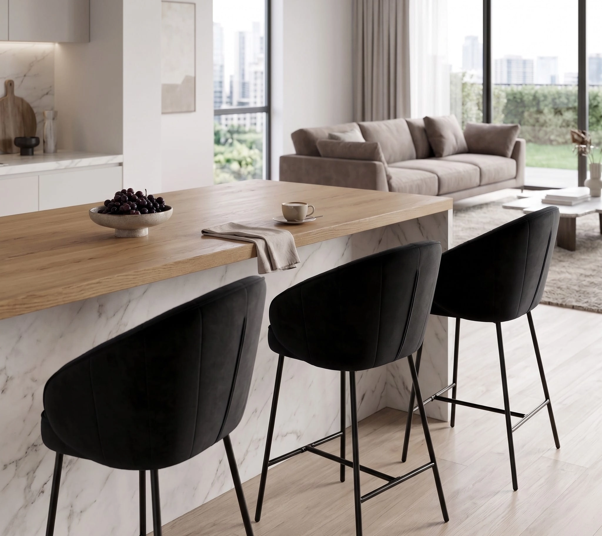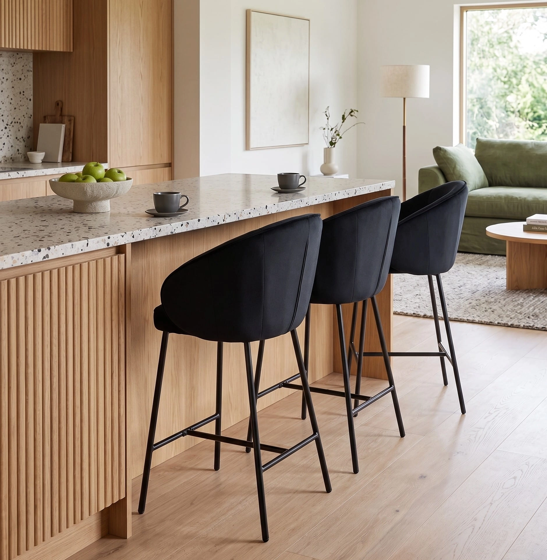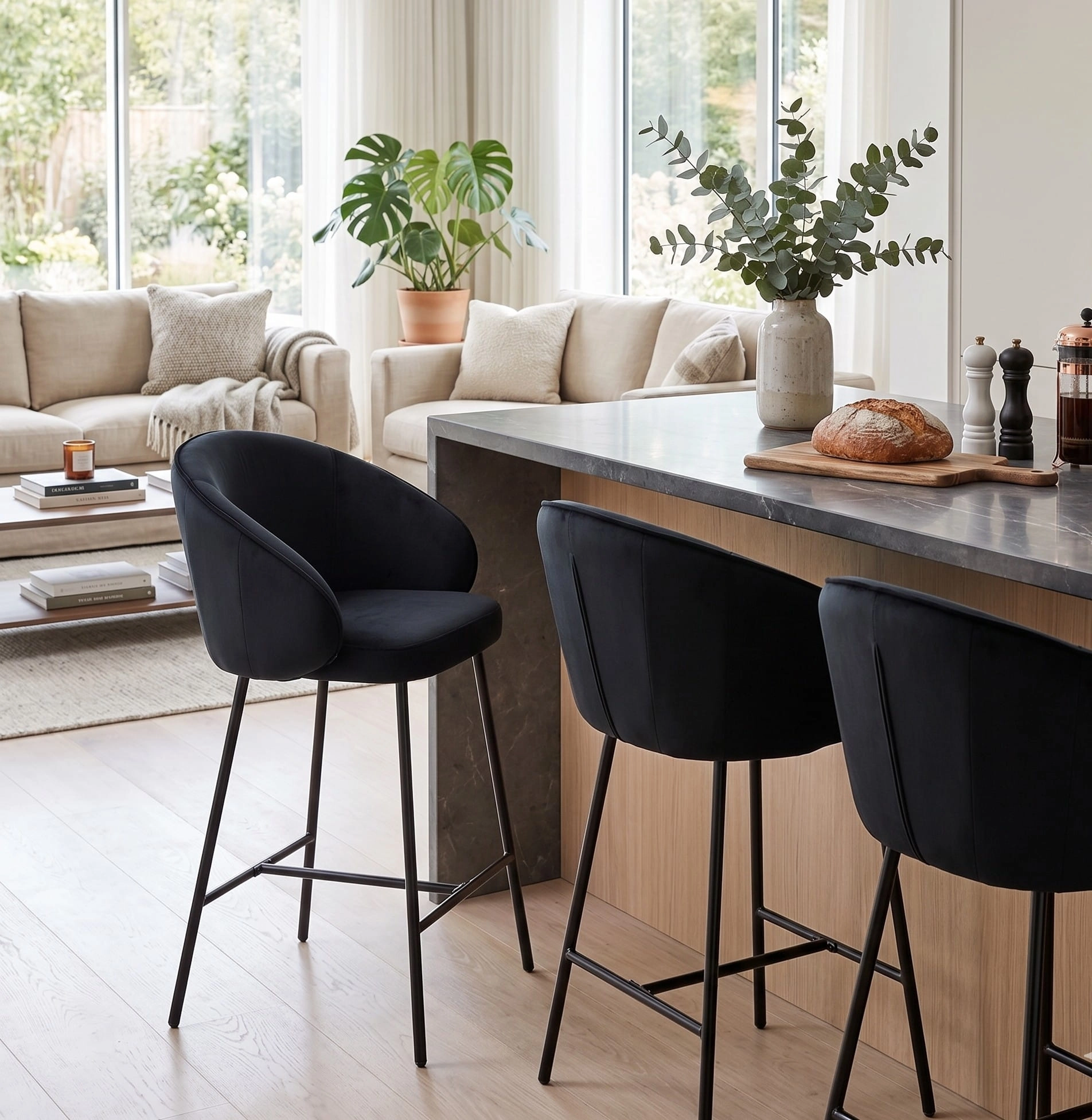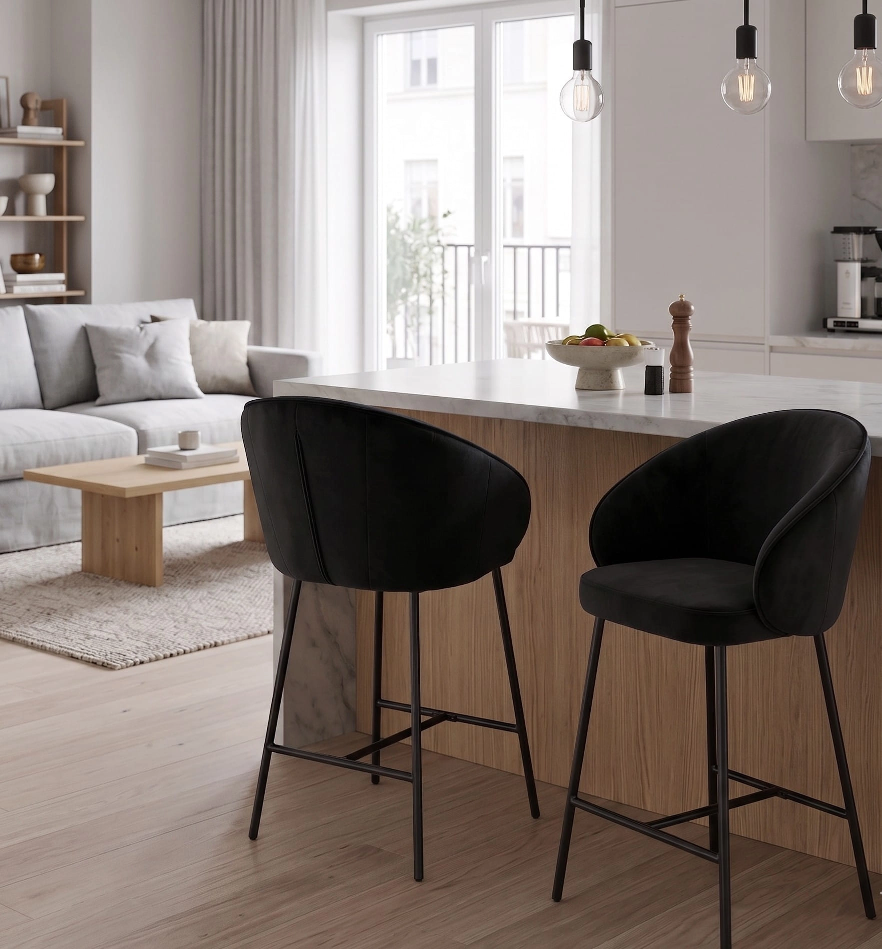 ✨ Elegancki hoker welurowy czarny OTILO – styl i komfort do kuchni z wyspą