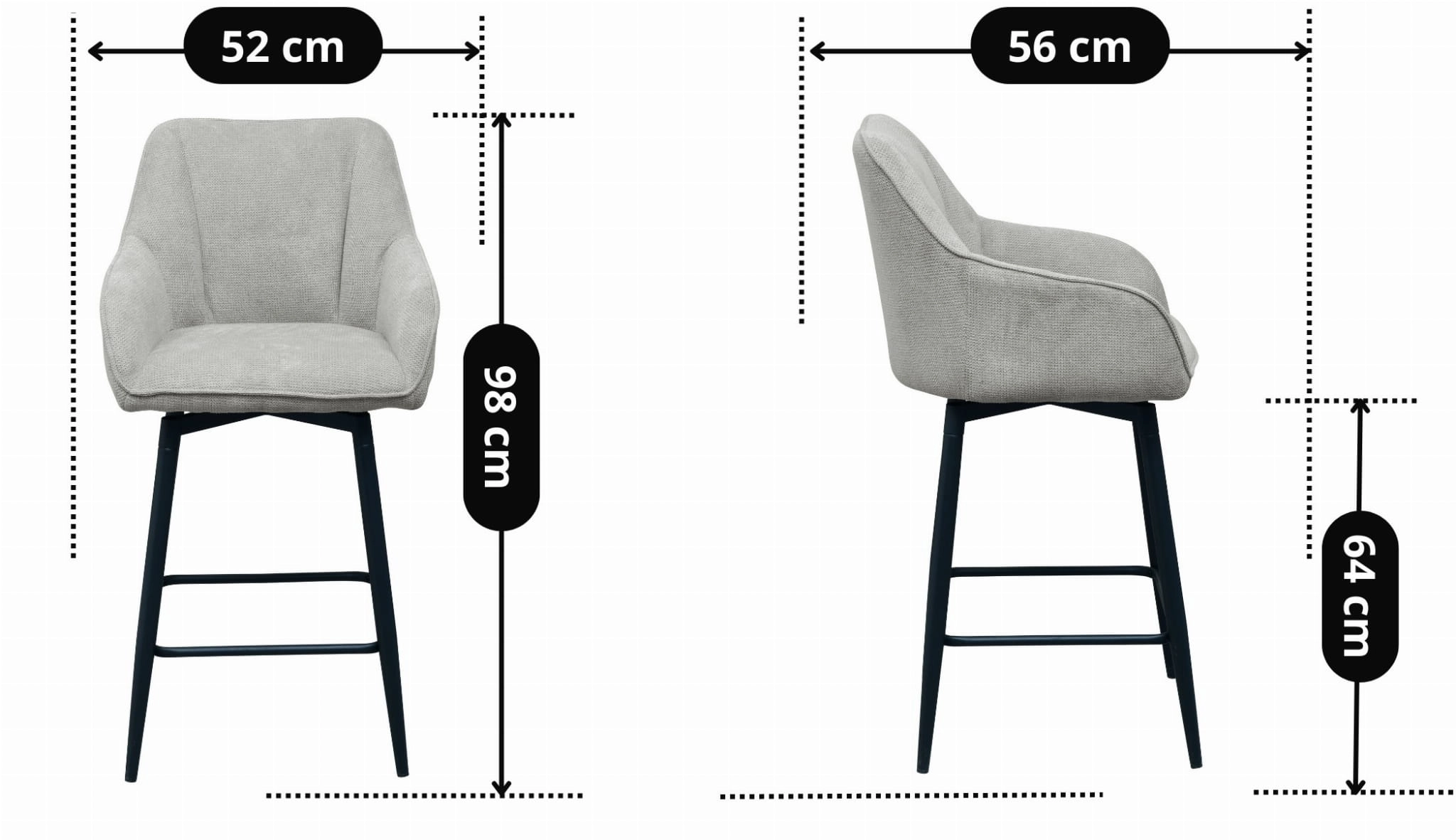 Hoker krzesło barowe obrotowe z podłokietnikami ELMO tkanina szare CAT-16