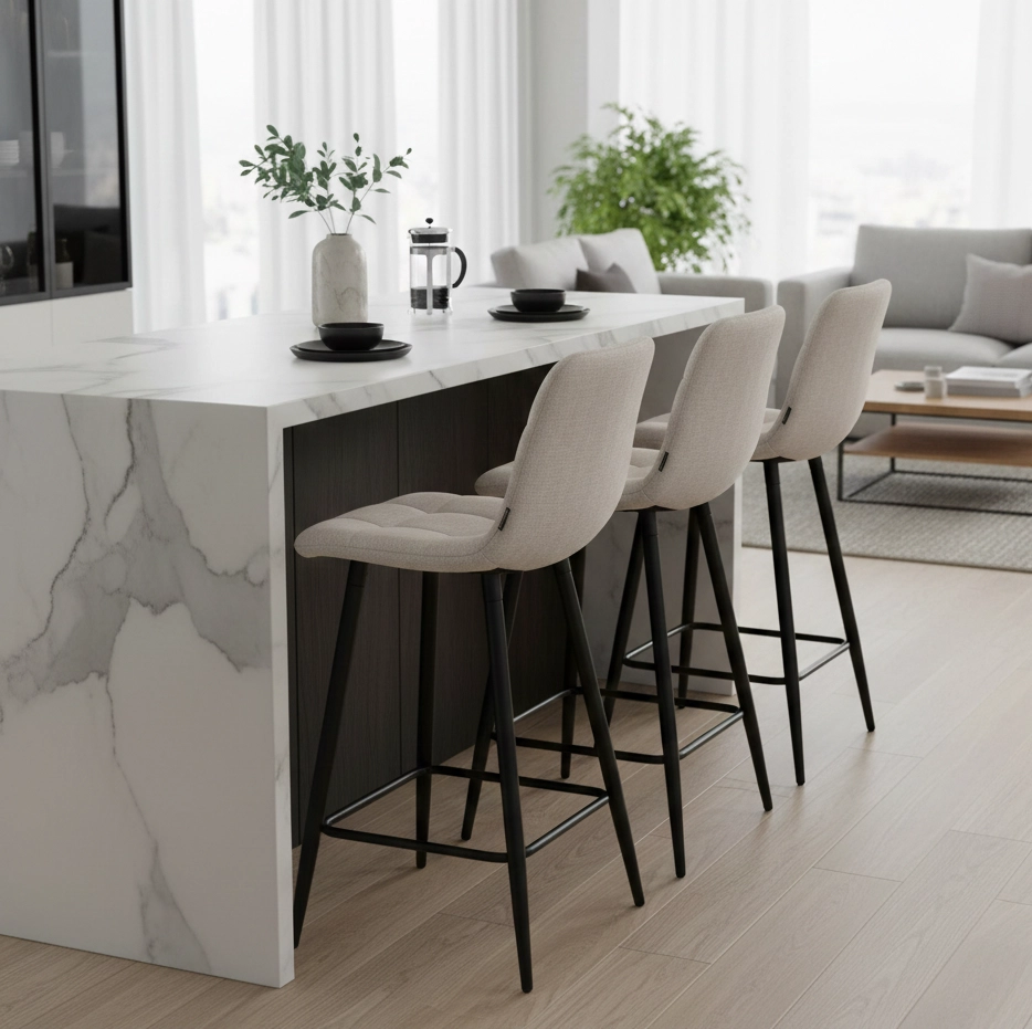 Beżowy hoker do kuchni TORE - S to doskonały wybór, jeśli szukasz mebla, który zachwyca nie tylko wyglądem, ale również trwałością i funkcjonalnością. Jego uniwersalny styl sprawia, że łatwo dopasujesz go do reszty aranżacji – od stylu loftowego, przez glamour, aż po nowoczesny minimalizm.