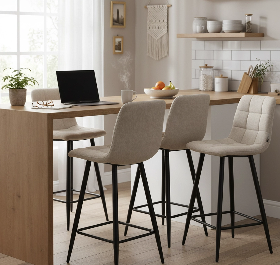 - Uniwersalna forma i wysokość – 65 cm do siedziska, idealna do wysp kuchennych