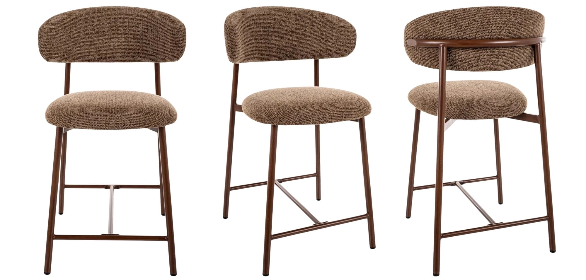 - Zaokrąglone oparcie – łagodzi linię mebla i sprawia, że krzesło barowe tapicerowane wygląda lekko oraz bardziej przytulnie.